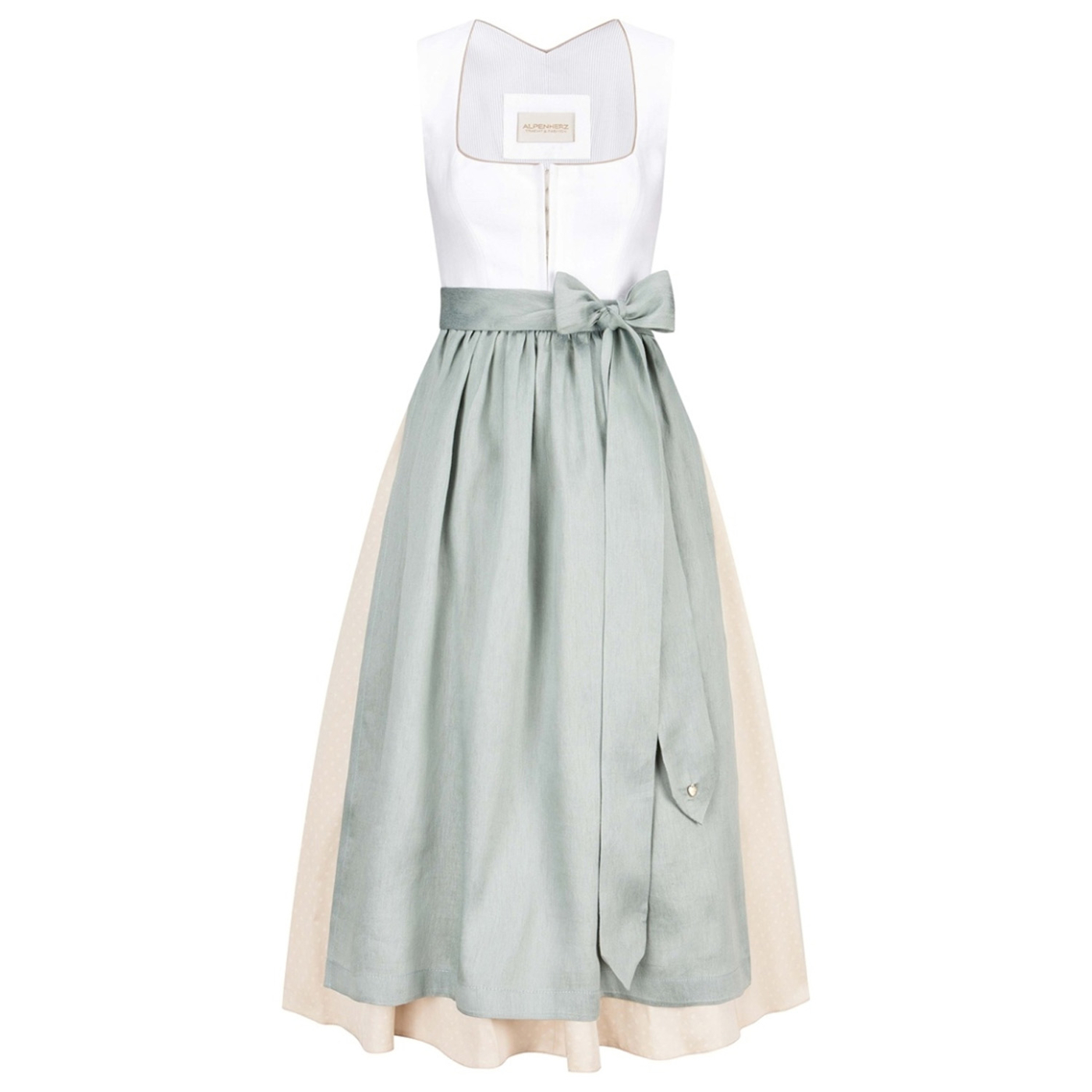 • Farblich abgesetzte Schürze und Rock