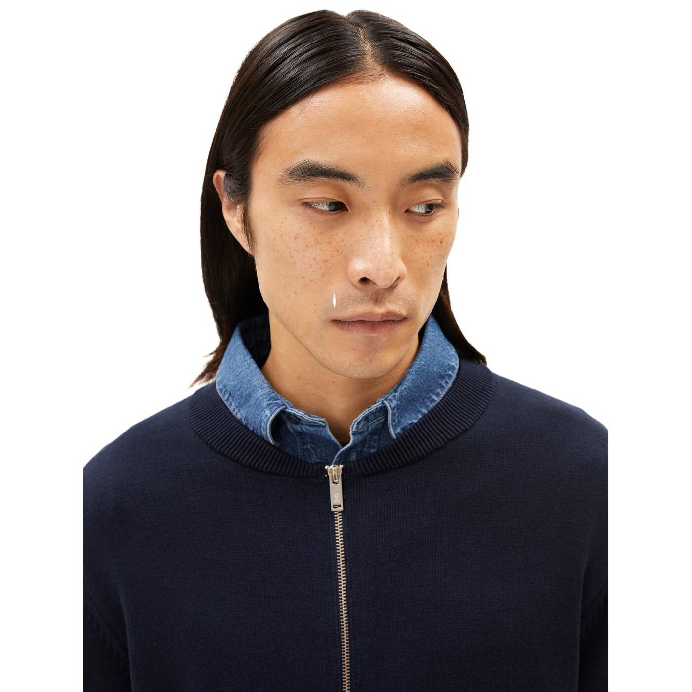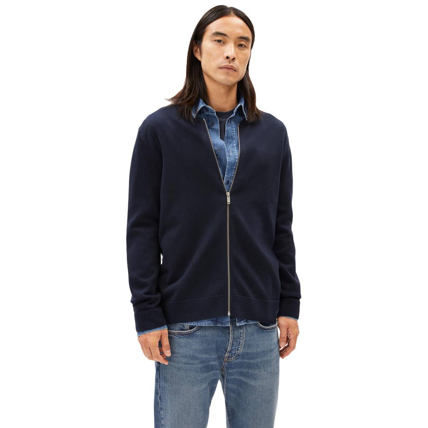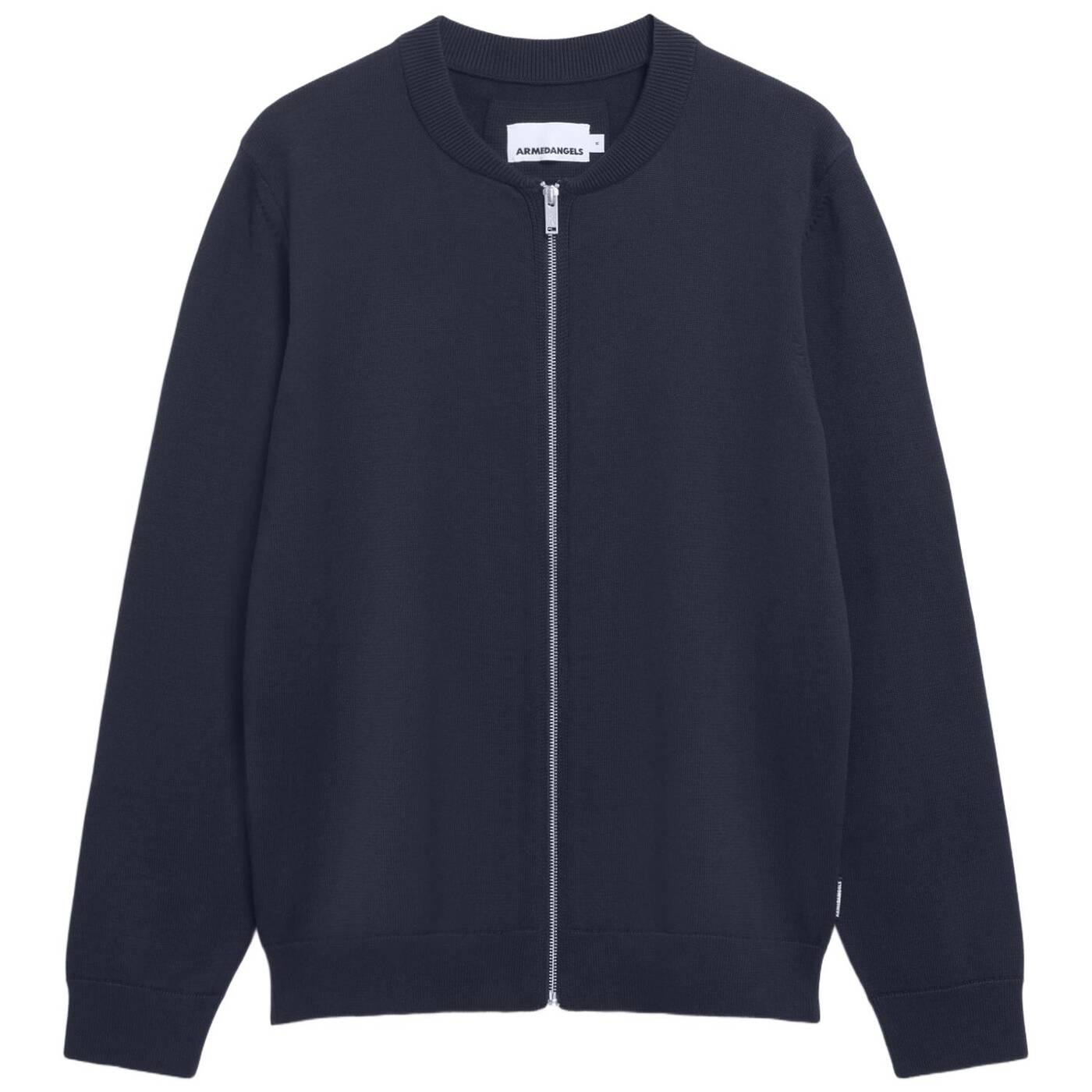 Our AGAAMON knit cardigan, made from pure organic cotton, features a relaxed fit, a classic blouson collar, and a practical zipper.