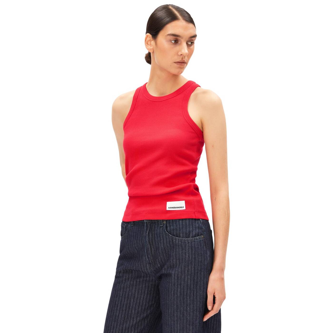 The timeless kanitaa top boasts a figure-hugging fit and a subtle ribbed texture. the soft blend of organic cotton and a hint of stretch makes it comfortable to wear - a versatile basic for any occasion.