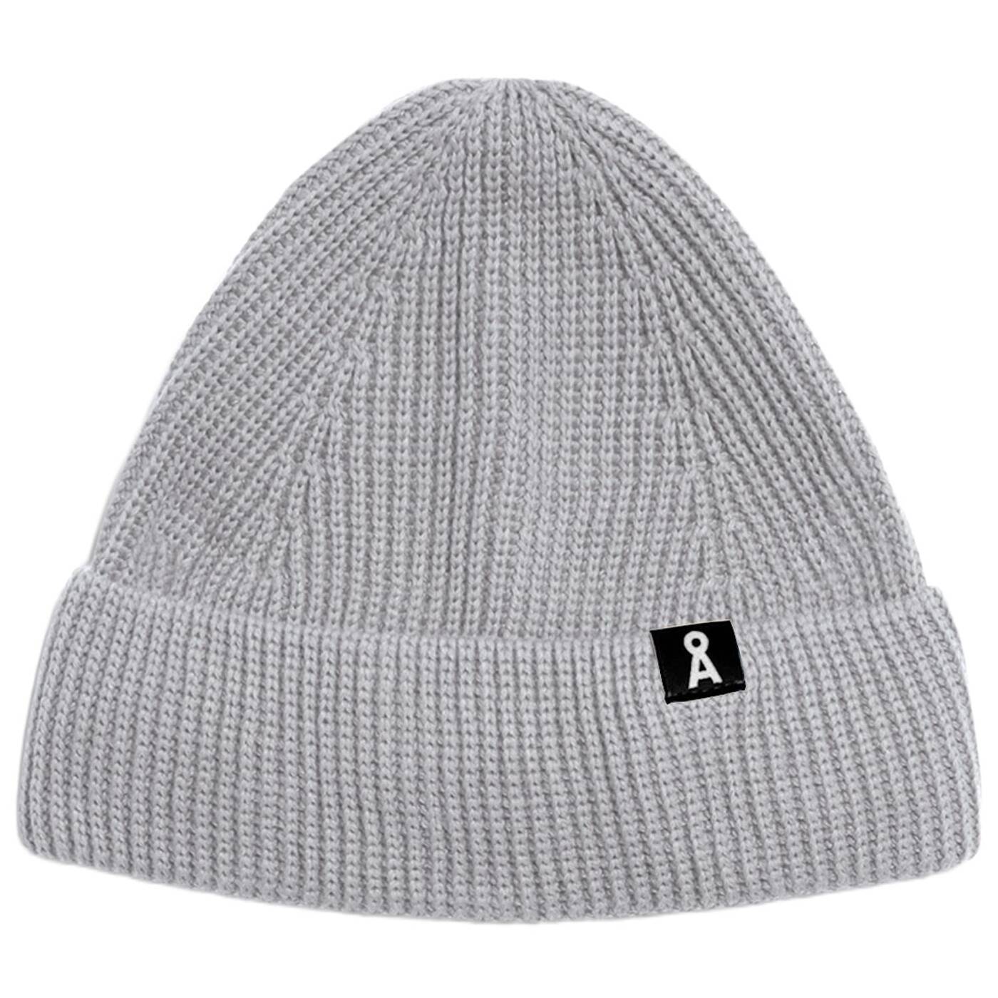 Die Mütze hat einen gerollten Saum, der bequem auf den Kopf passt. Auf der rechten Seite befindet sich das kleine Armedangels Logo, das auf einem quadratischen weißen Hintergrund platziert ist.