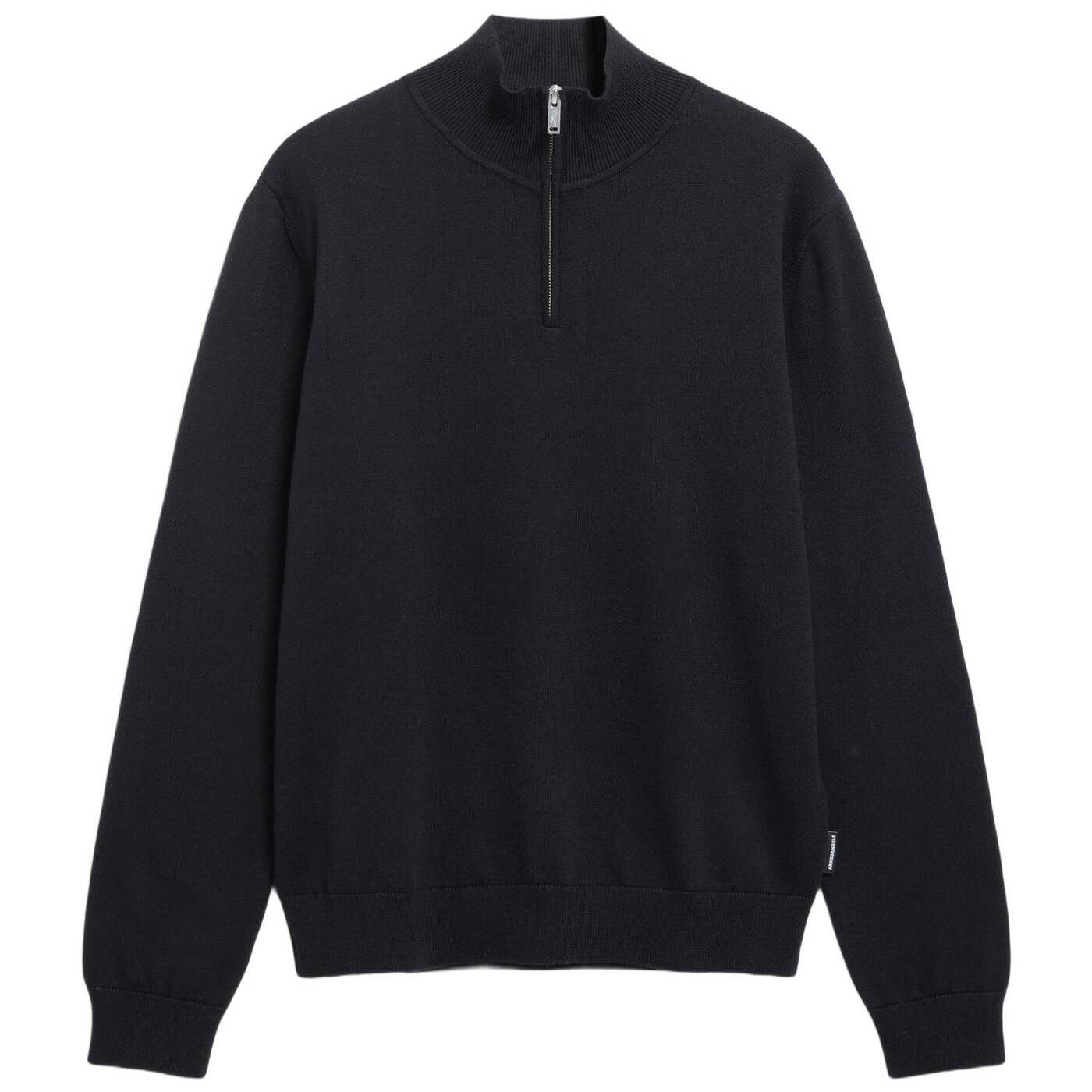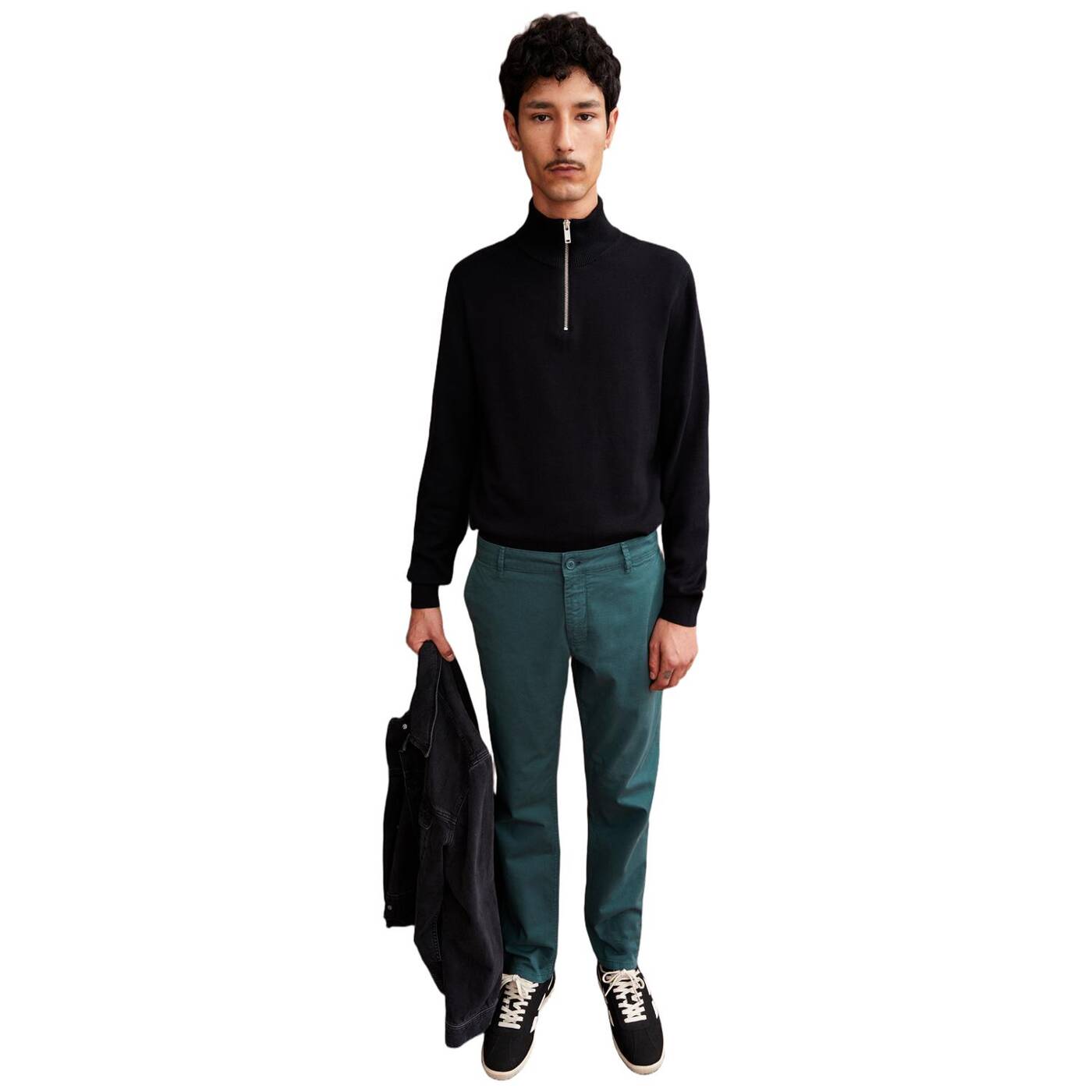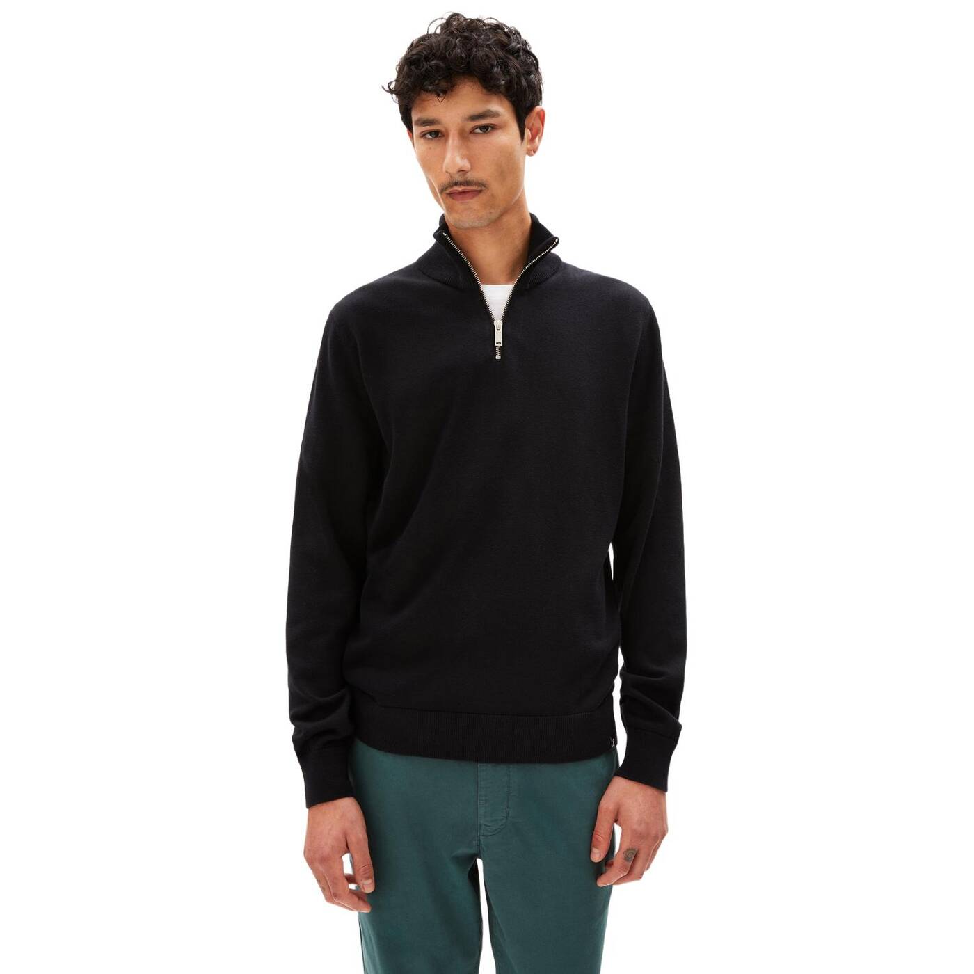 Der Pullover hat einen halbhohen Kragen , der durch einen kurzen Reißverschluss geschlossen wird. Die Ärmel sind lang und schlicht gestaltet. Der Pullover passt perfekt für kühle Tage und bietet sowohl Komfort als auch Stil