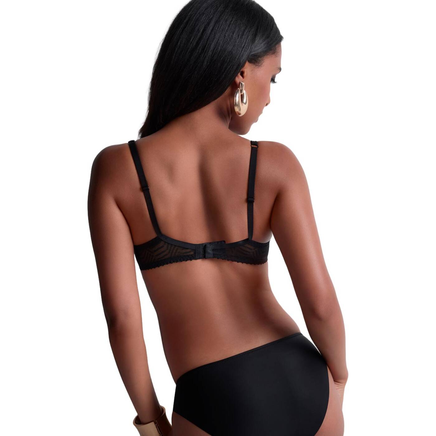 Die Dreiviertelschale der Linie Vibes überzeugt mit zarter Stickerei und transparenten Einsätzen, die ein sinnliches, rundes Dekolleté zaubern. Goldfarbene Akzente setzen elegante Highlights, während die weit ausgeschnittene Rückenpartie für optimalen Halt und hohen Tragekomfort sorgt.