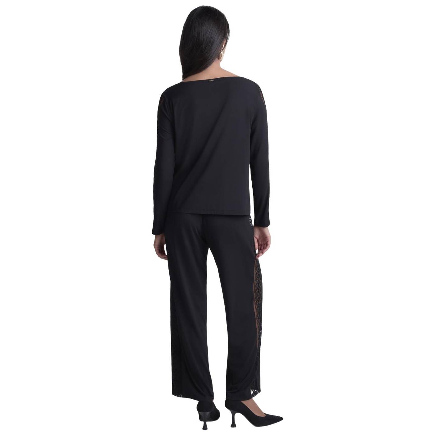 Die Hose der Linie Sweet Obsession aus weichem, fließendem Material folgt bequem den Bewegungen des Körpers. Transparente Einsätze aus grafischer Spitze an den Seiten lassen dabei elegant die Haut hervorscheinen.