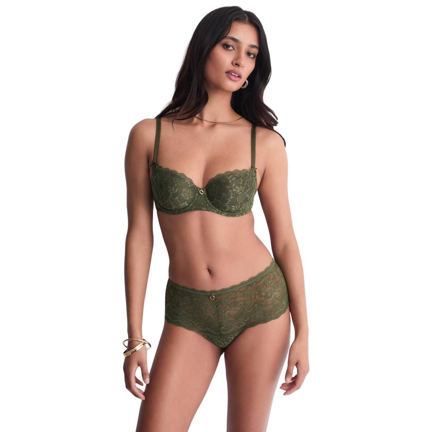 Die Shorty der Linie Rosessence betont mit ihrer breiten Seitenpartie elegant die Hüfte und formt durch die höheren Beinausschnitte die Rundung des Pos. Das Modell aus weicher, transparenter Spitze mit floralem Muster bietet komfortablen Sitz für den Alltag und wird vorne durch ein Strass-verziertes Schmuckdetail veredelt.