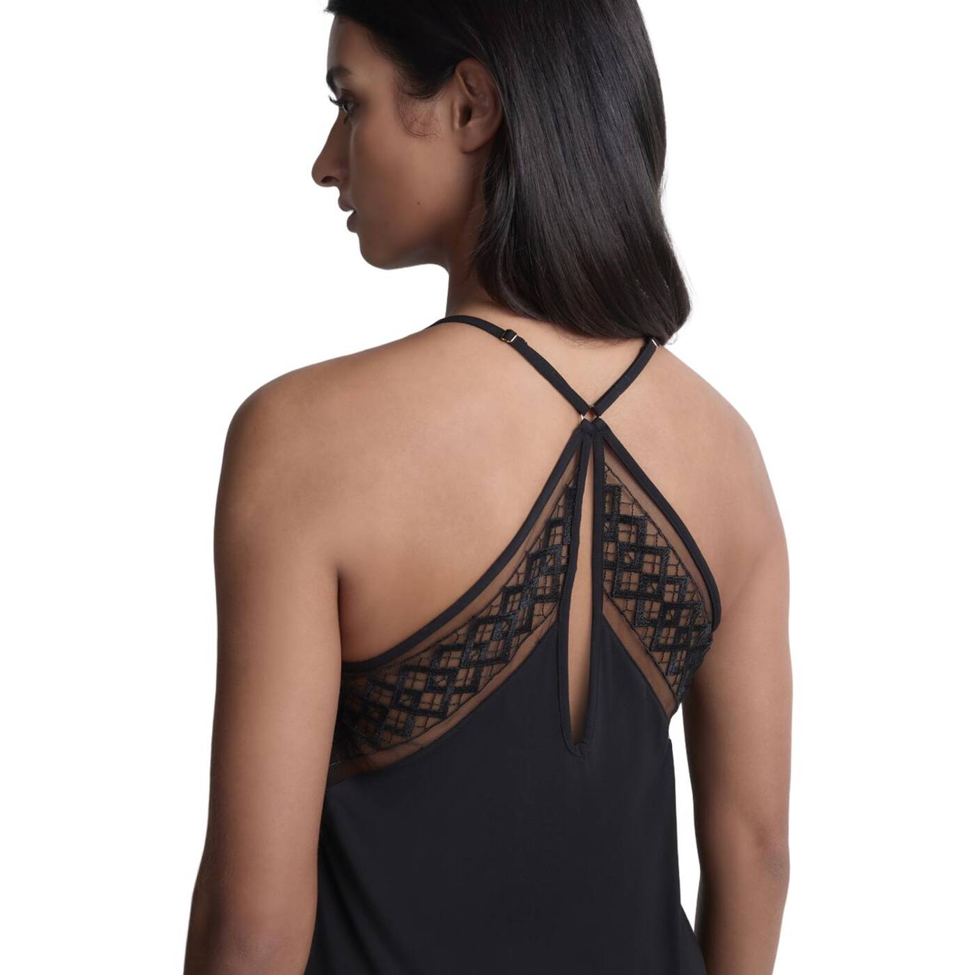 Das leichte Top der Linie Sweet Obsession besteht aus weichem, angenehm zu tragendem Material. Zarte Stickborten mit Transparenzeffekten umrahmen das Dekolleté, während sich die Träger auf der Rückseite über einem verführerischen Tropfenausschnitt kreuzen.