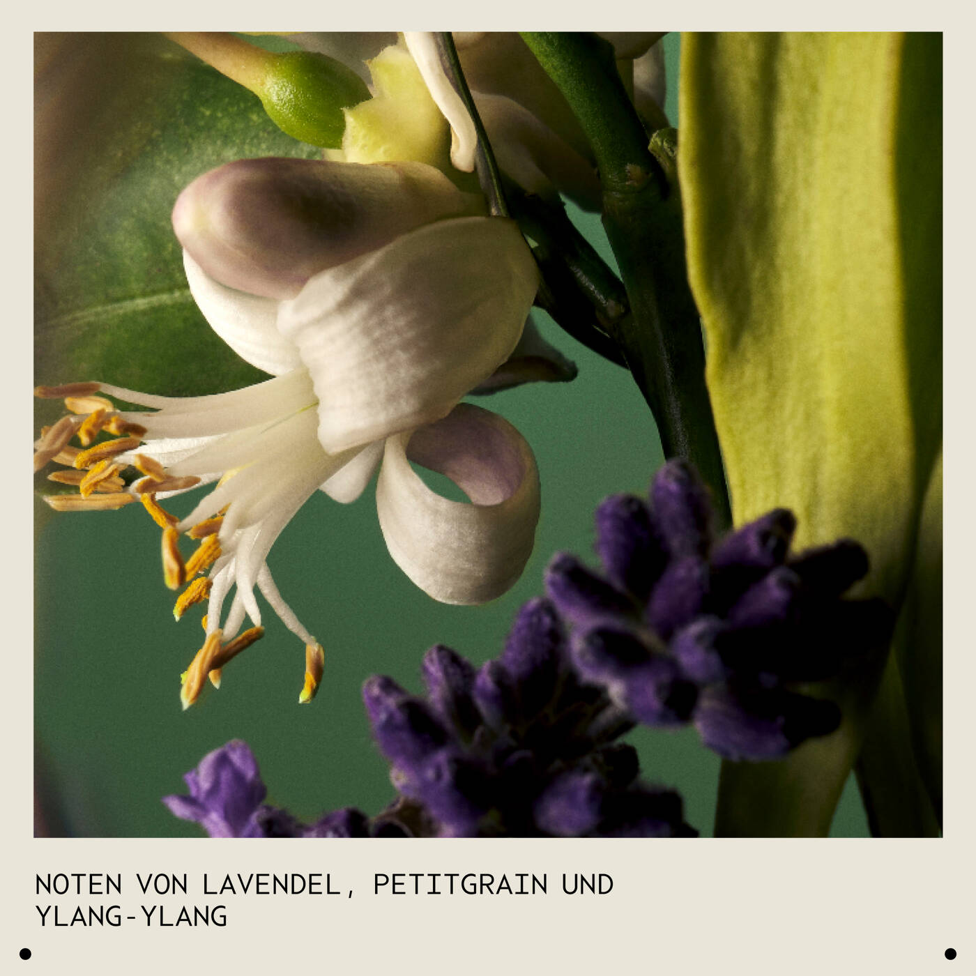 Mit Avedas charakteristischem Pure-Fume™ Aroma mit 25 reinen Blüten- und Pflanzenessenzen, darunter Lavendel, Ylang-Ylang und Petitgrain.
