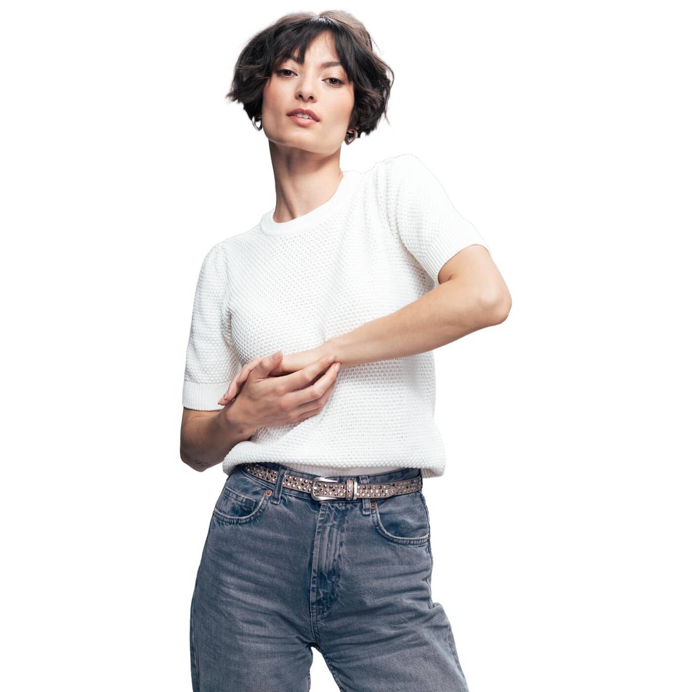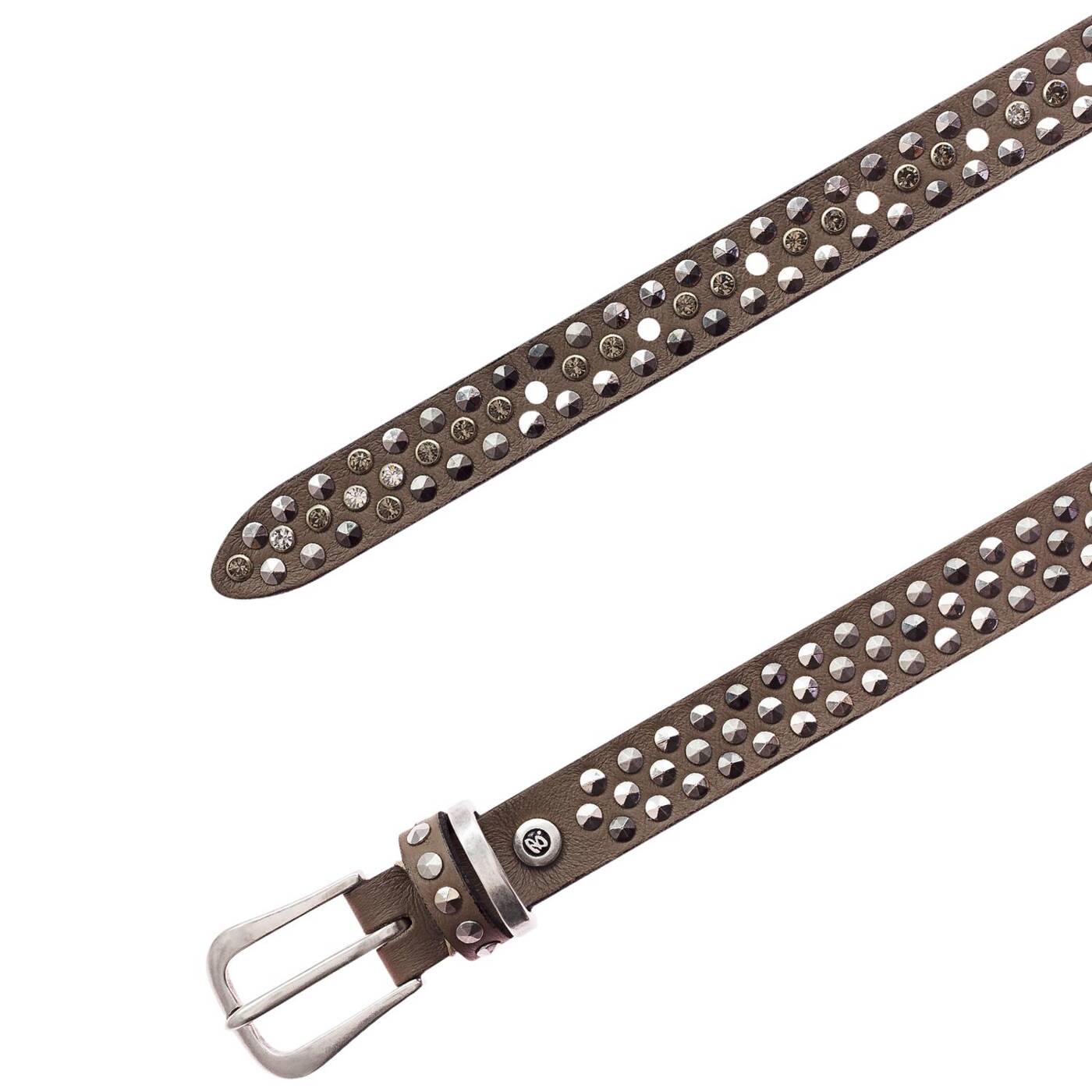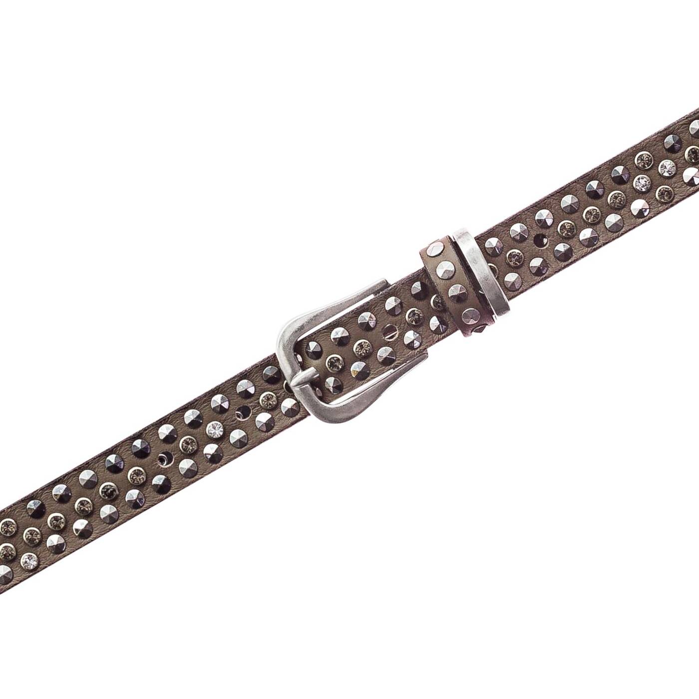 Der vollrindleder-nietengürtel ist 20 mm breit, mit glänzend-silbernen, matt-silbernen, glänzend-schwarzen pyramid-nieten, kristallsteinen, doppelschlaufe, abgerundeter spitze und einer dornschließe in mattem silber verziert. das material ist ein weiches, mit feinstem wirbelvlies kaschiertes vollrindleder mit dezenter narbung und matter oberflächer. dieser gürtel ist die ideale ergänzung zu allen freizeit-outfits und garantiert einen lässigen und modernen look.