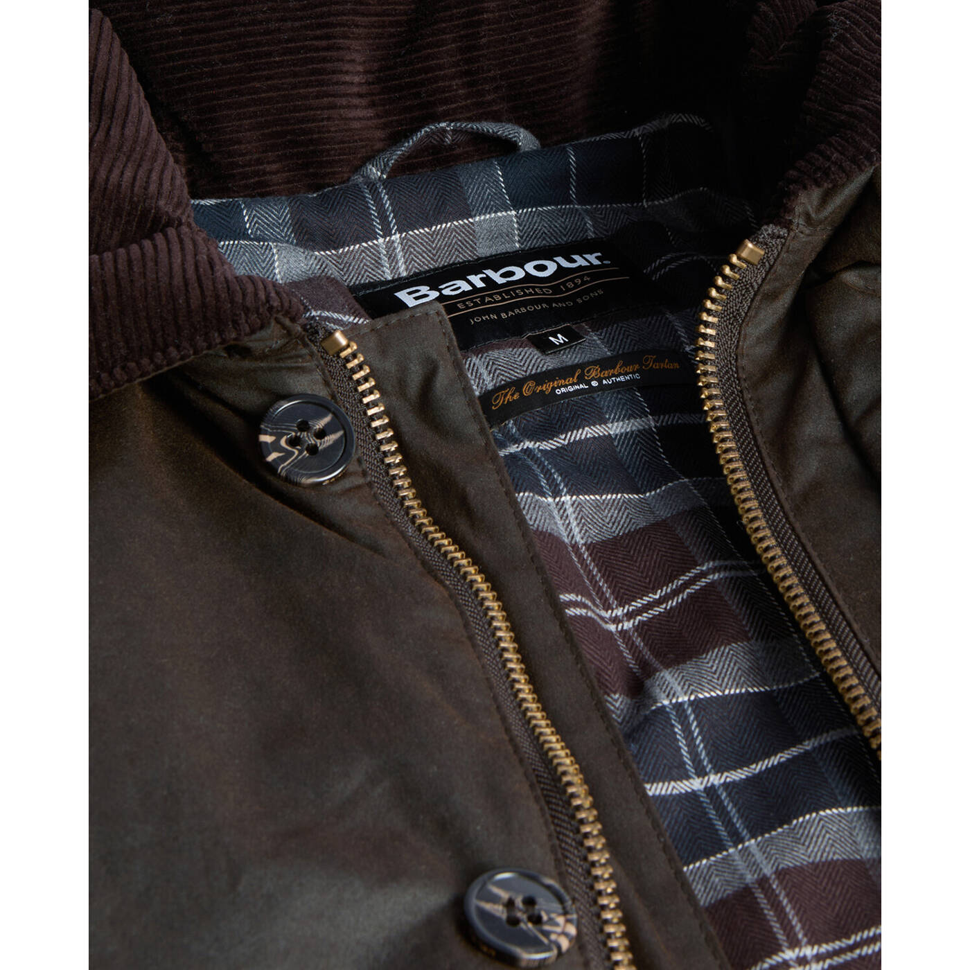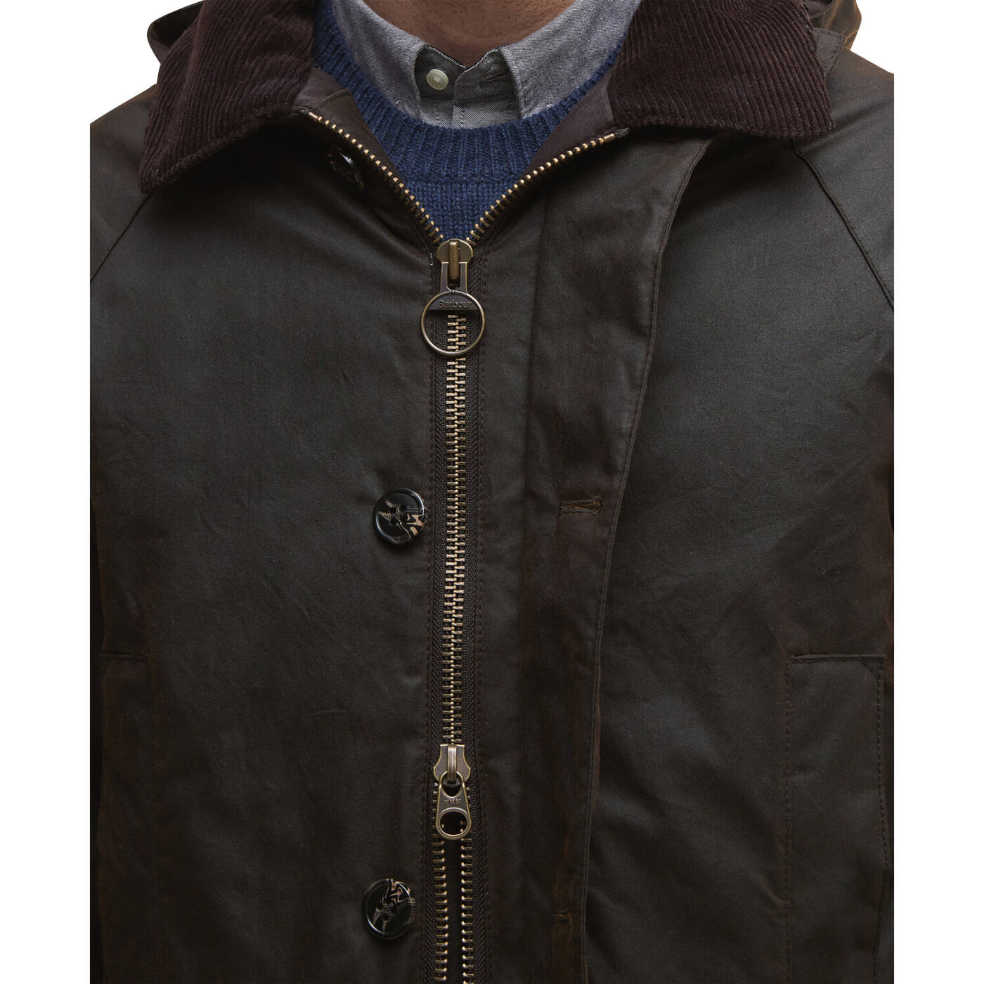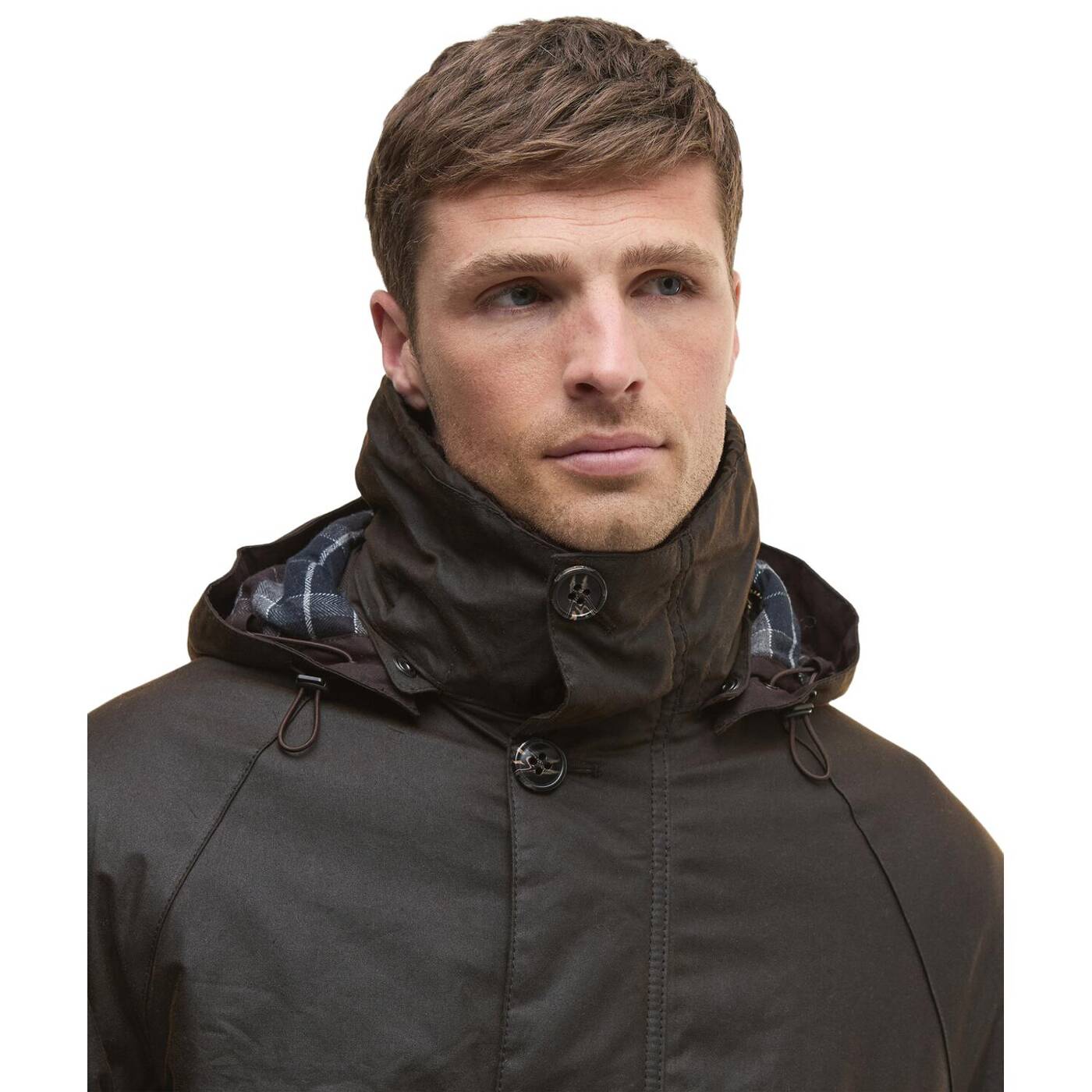 Der Barbour Trenchcoat Beaudale Waxed bietet die perfekte Mischung aus robustem Charme und praktischem Design. Der Style ist aus gewachster Baumwolle gefertigt und verfügt über einen Reißverschluss mit Knopfleiste, einen breiten Kragen mit Cordfutter, eine abnehmbare Kapuze und praktische Taschen.