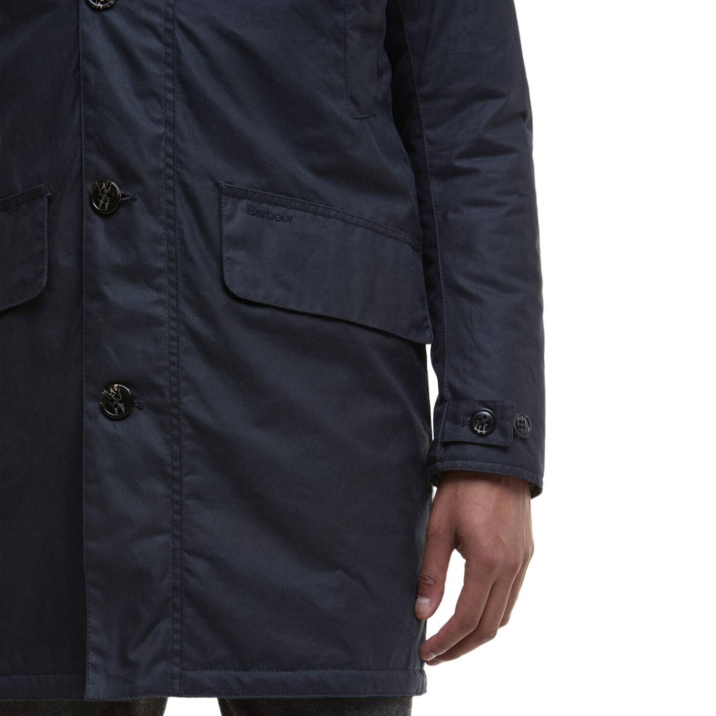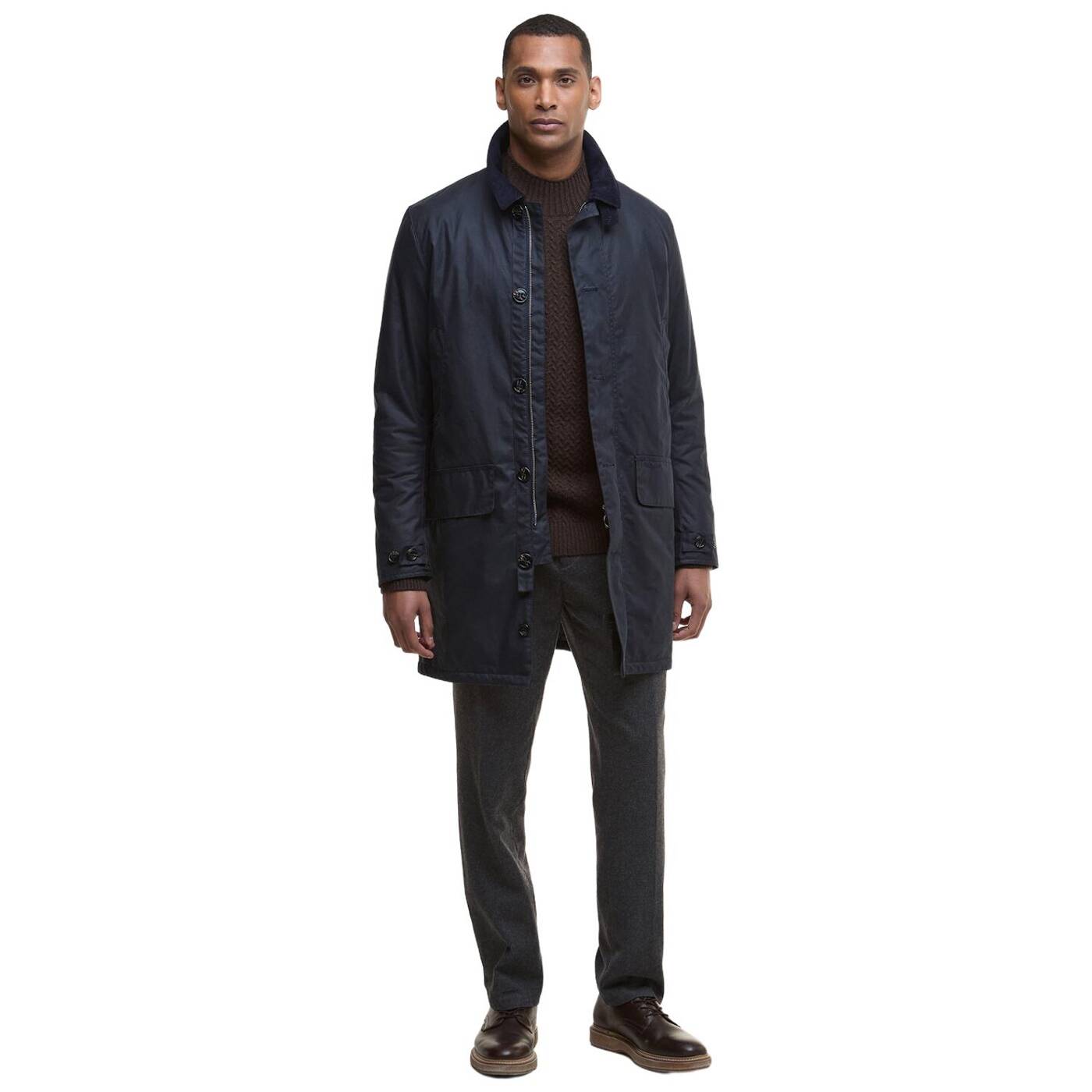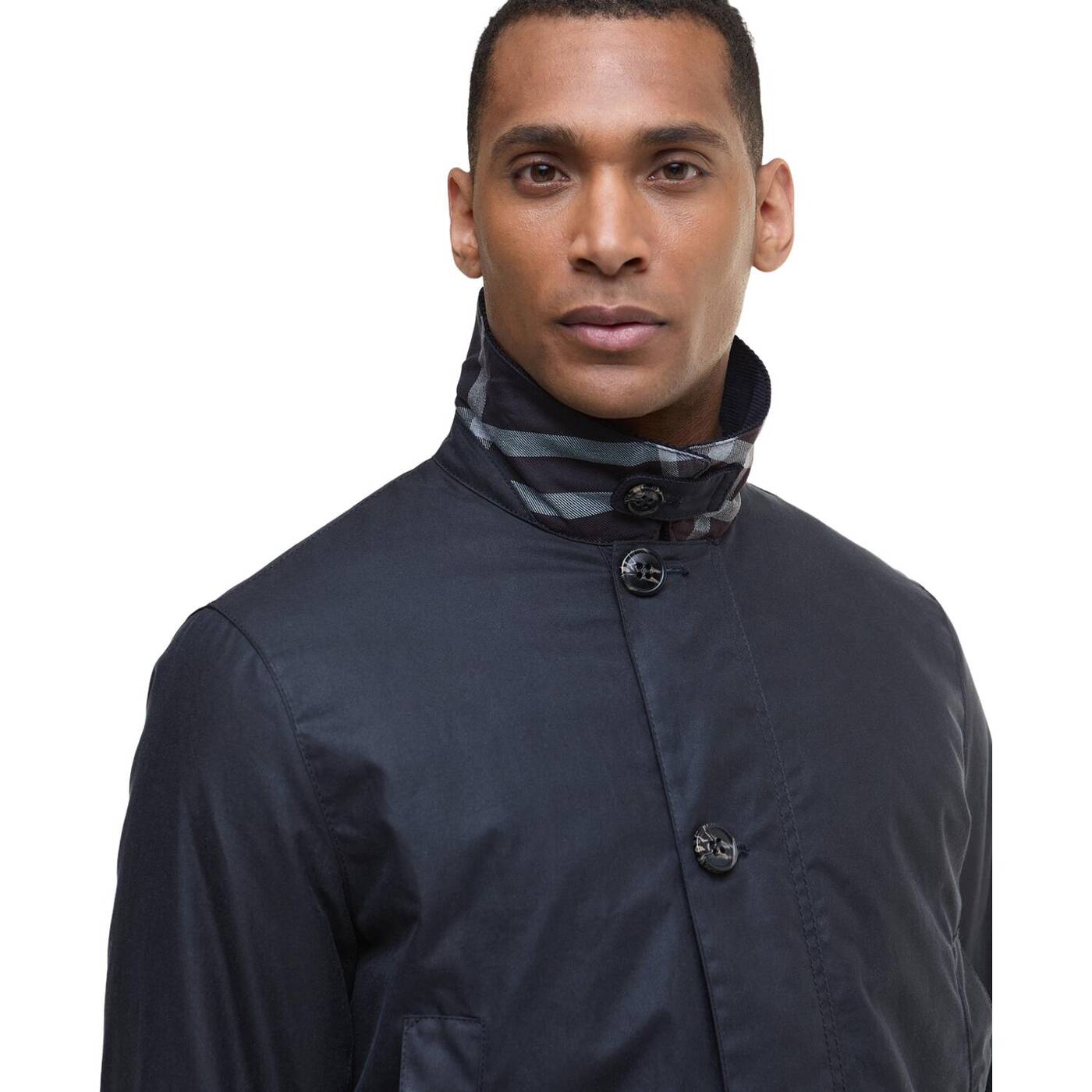Die markante Wachsjacke Mac präsentiert sich mit einem Tartan-Muster an der innen liegenden Rückenpasse und einem warmen, quadratisch gesteppten Futterstoff. Ein Cordkragen rundet das Design dezent ab. Für den Tragekomfort sorgen die mit Knöpfen verstellbaren Ärmelabschlüssen. Zur Ausstattung zählen außerdem Schubtaschen und unten sitzende, praktische Leistentaschen mit Patten in stilechter Optik.