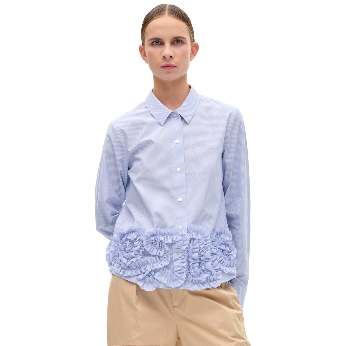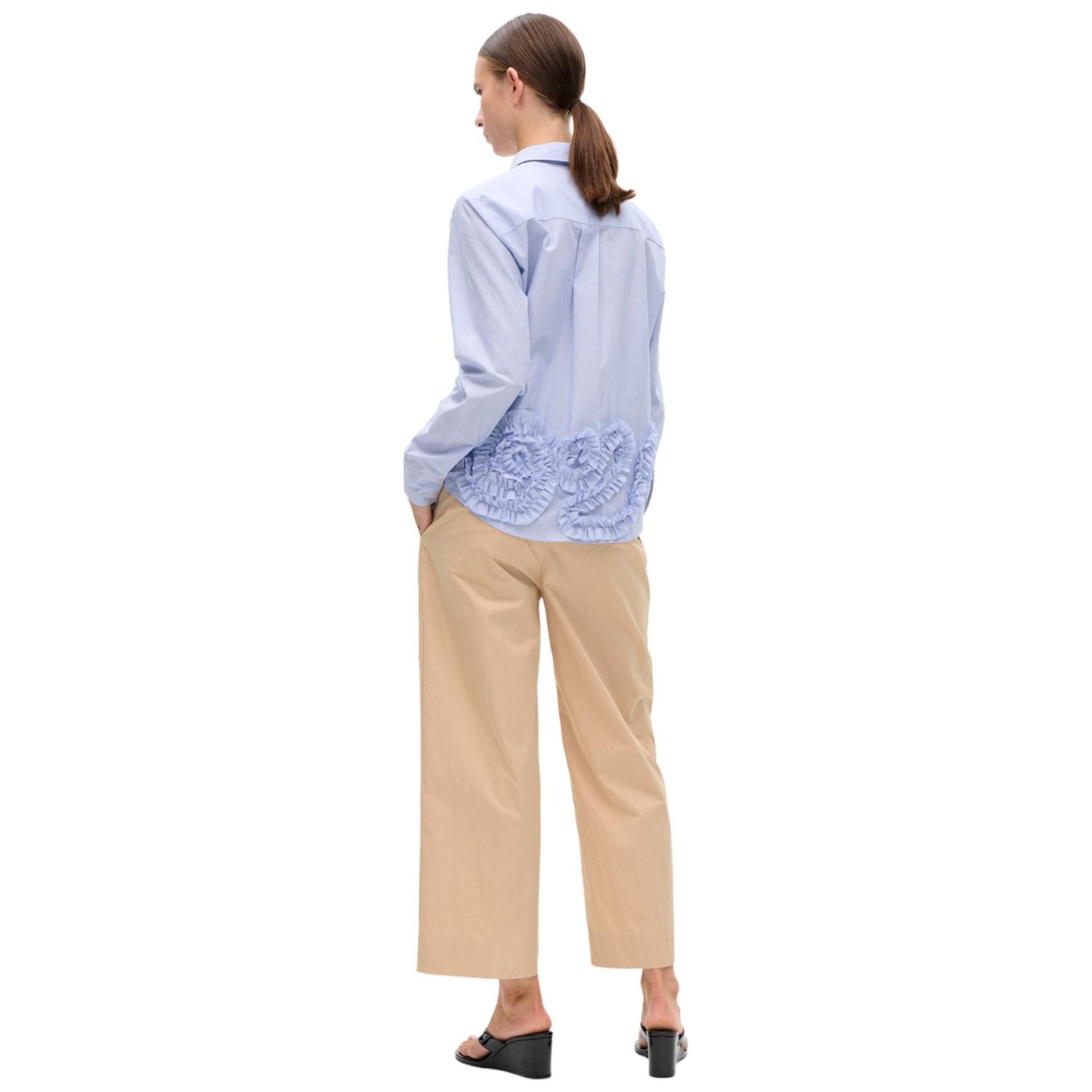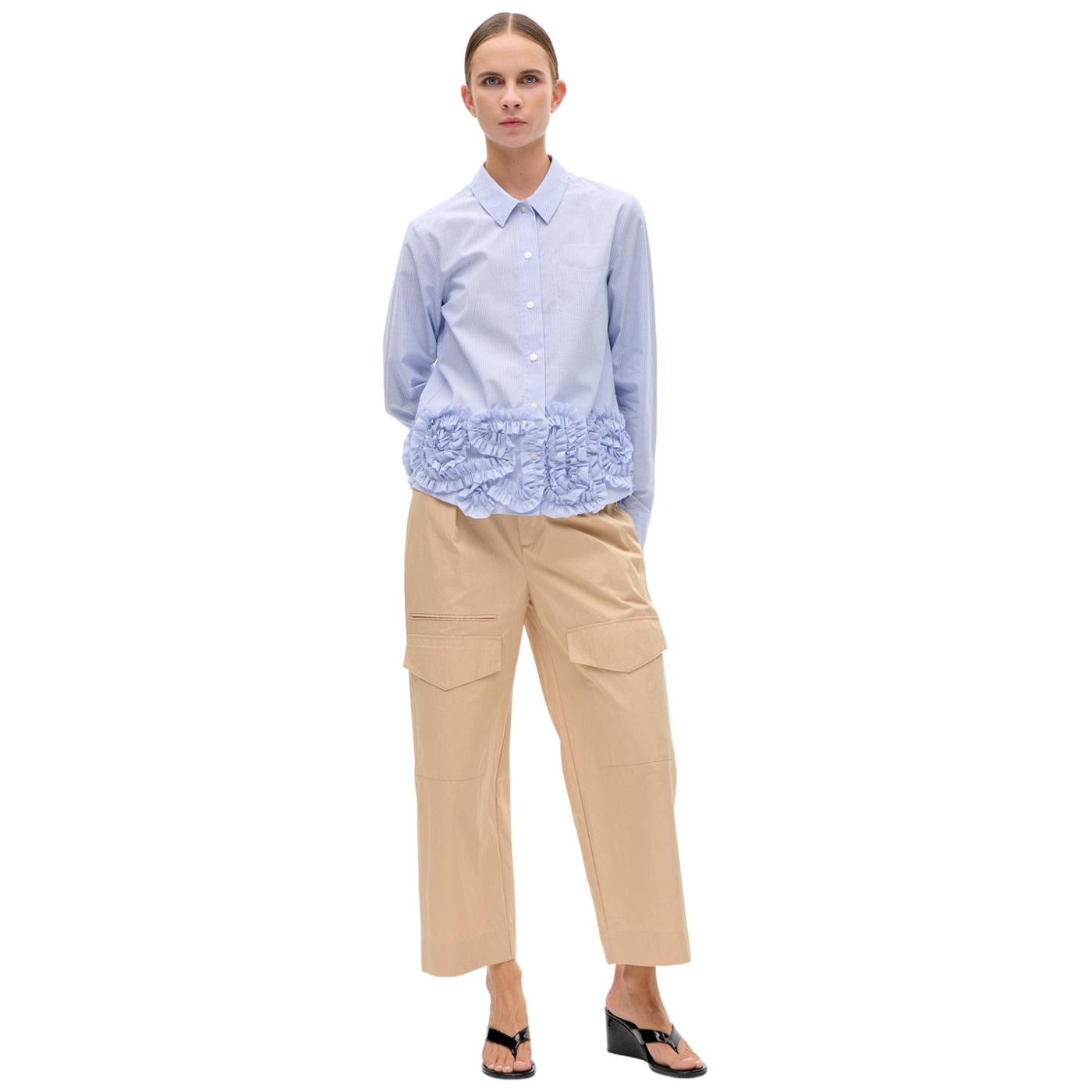 • Auffälliges Design-Detail: Breiter Rüschenbesatz am unteren Saum