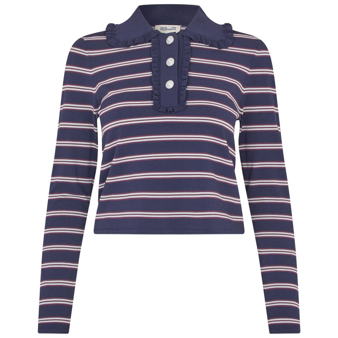 kurze Leiste mit drei silbernen Knöpfen, umrahmt von Rüschen