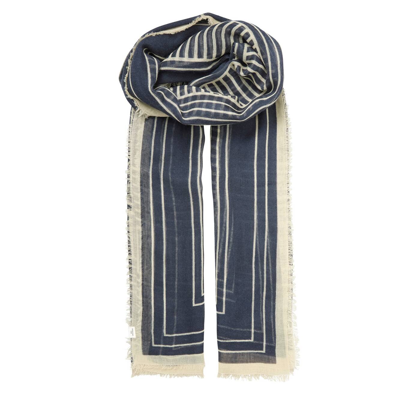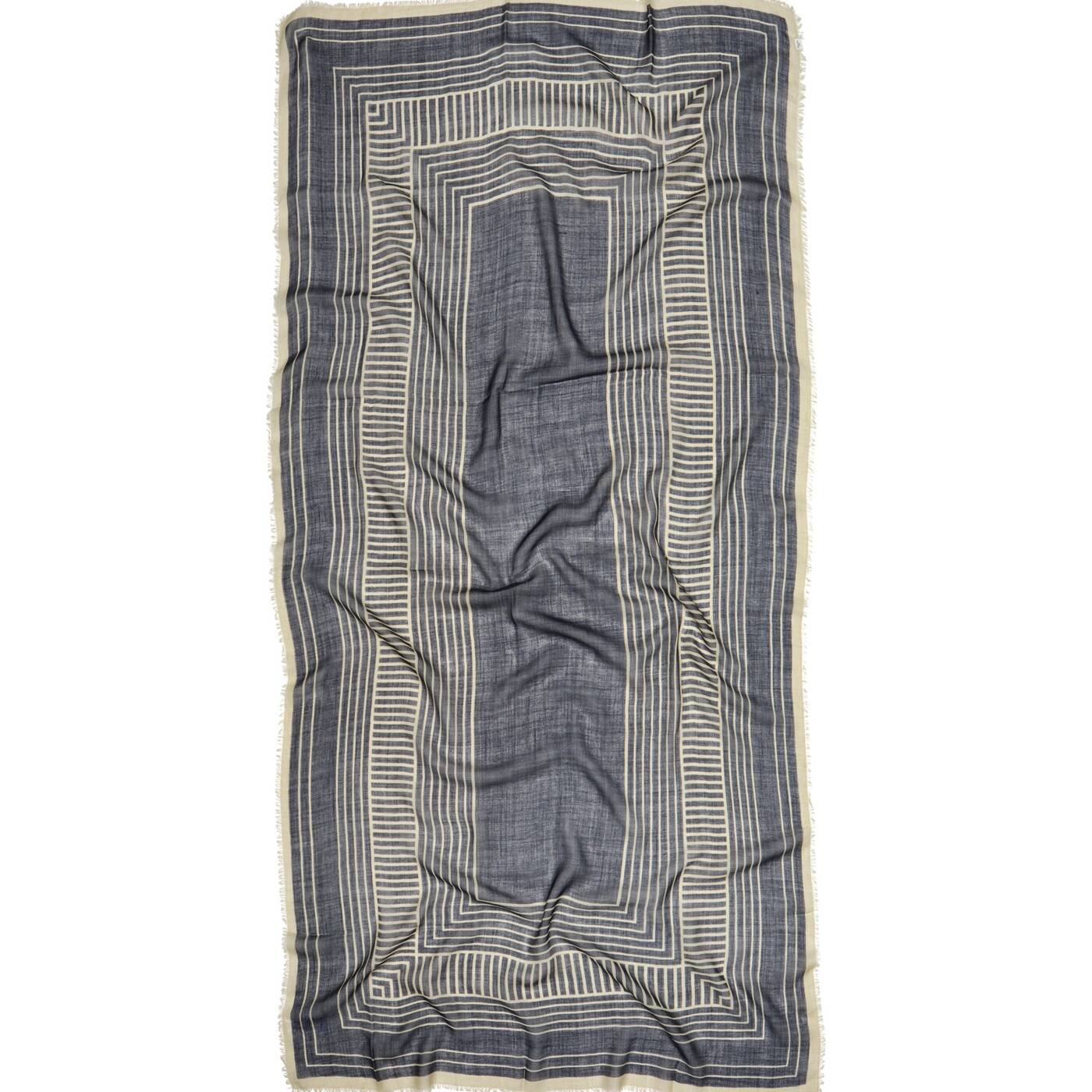 Ein rechteckiger Schal (100 x 200 cm) aus 100 % Wolle. Das grafische Muster verleiht ihm einen klaren, modernen Look und passt sowohl zu Alltags- als auch zu Abendoutfits. Die weiche Wolle fühlt sich angenehm auf der Haut an und wärmt an kühleren Tagen.