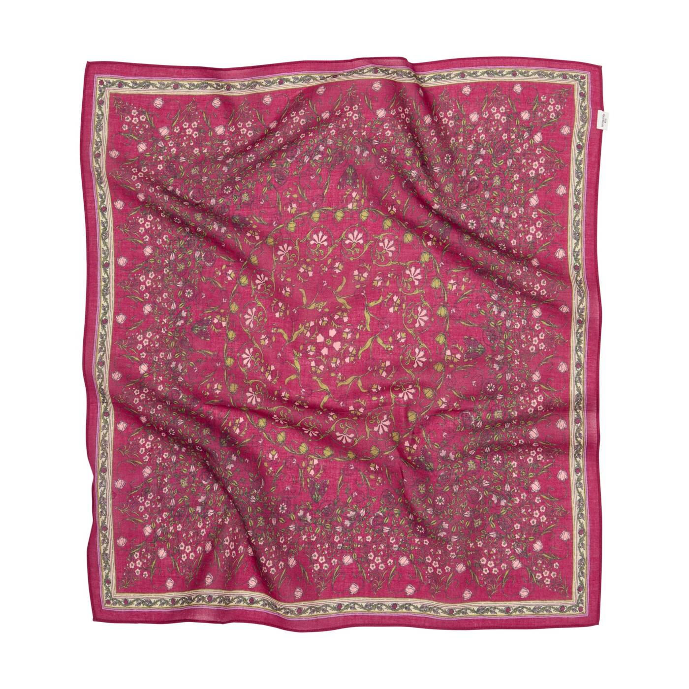 Ein quadratischer Schal (100 x 100 cm) aus 100 % Taby-Seide. Das florale Muster verleiht ihm einen zarten, femininen Look und ist in drei Farben erhältlich. Die Seide fühlt sich leicht auf der Haut an und lässt sich vielseitig stylen: als Halstuch, im Haar oder an der Tasche.