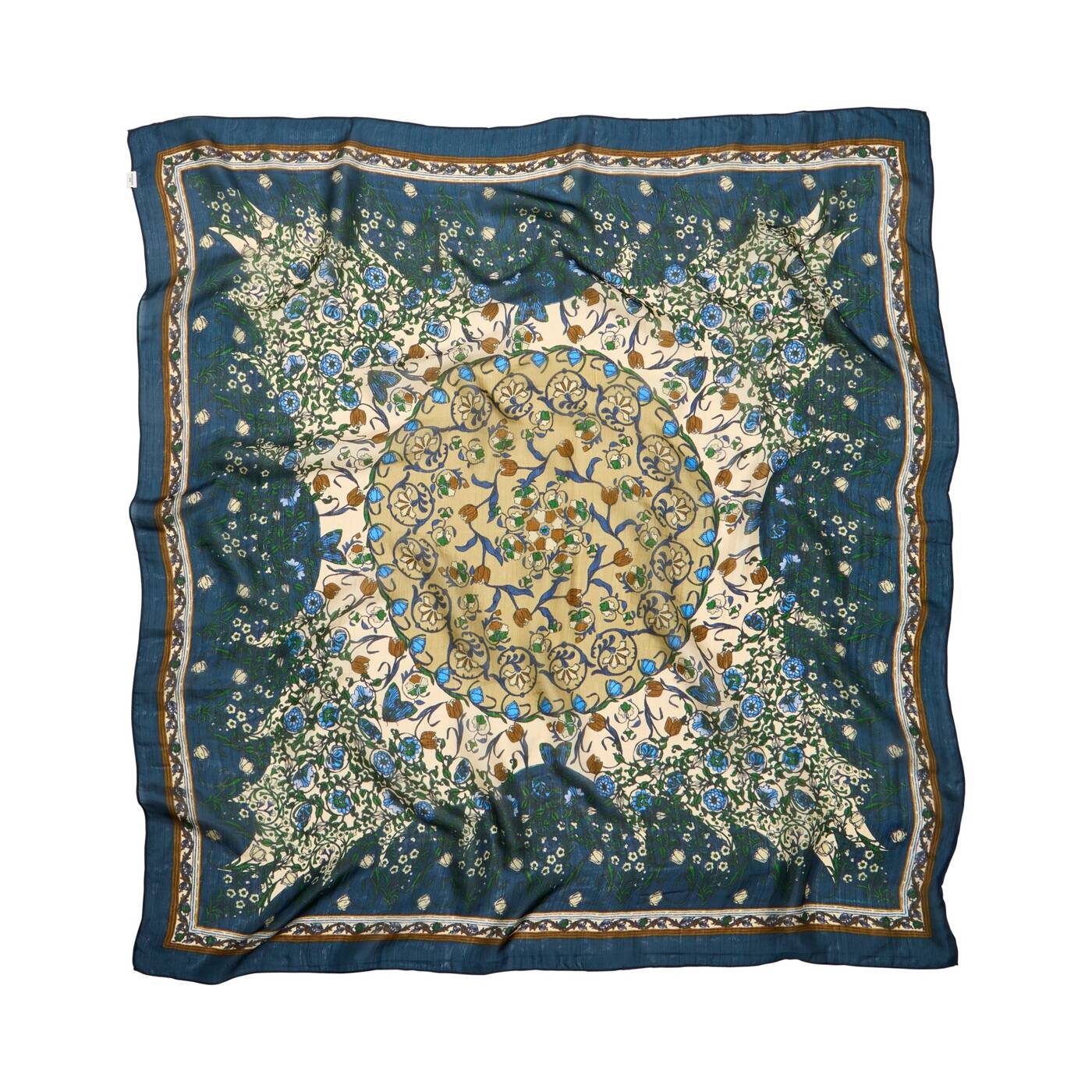 Ein quadratischer Schal (100 x 100 cm) aus 100 % Taby-Seide. Das florale Muster verleiht ihm einen zarten, femininen Look und ist in drei Farben erhältlich. Die Seide fühlt sich leicht auf der Haut an und lässt sich vielseitig stylen: als Halstuch, im Haar oder an der Tasche.