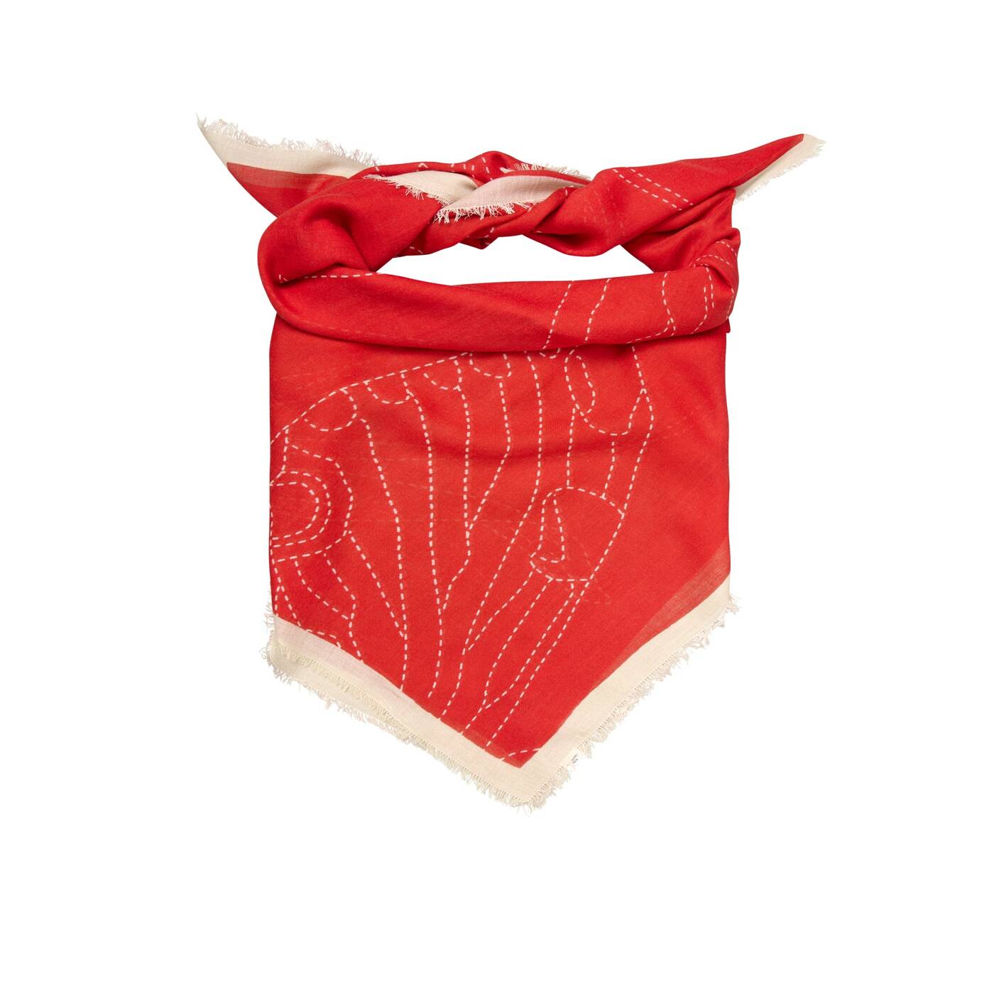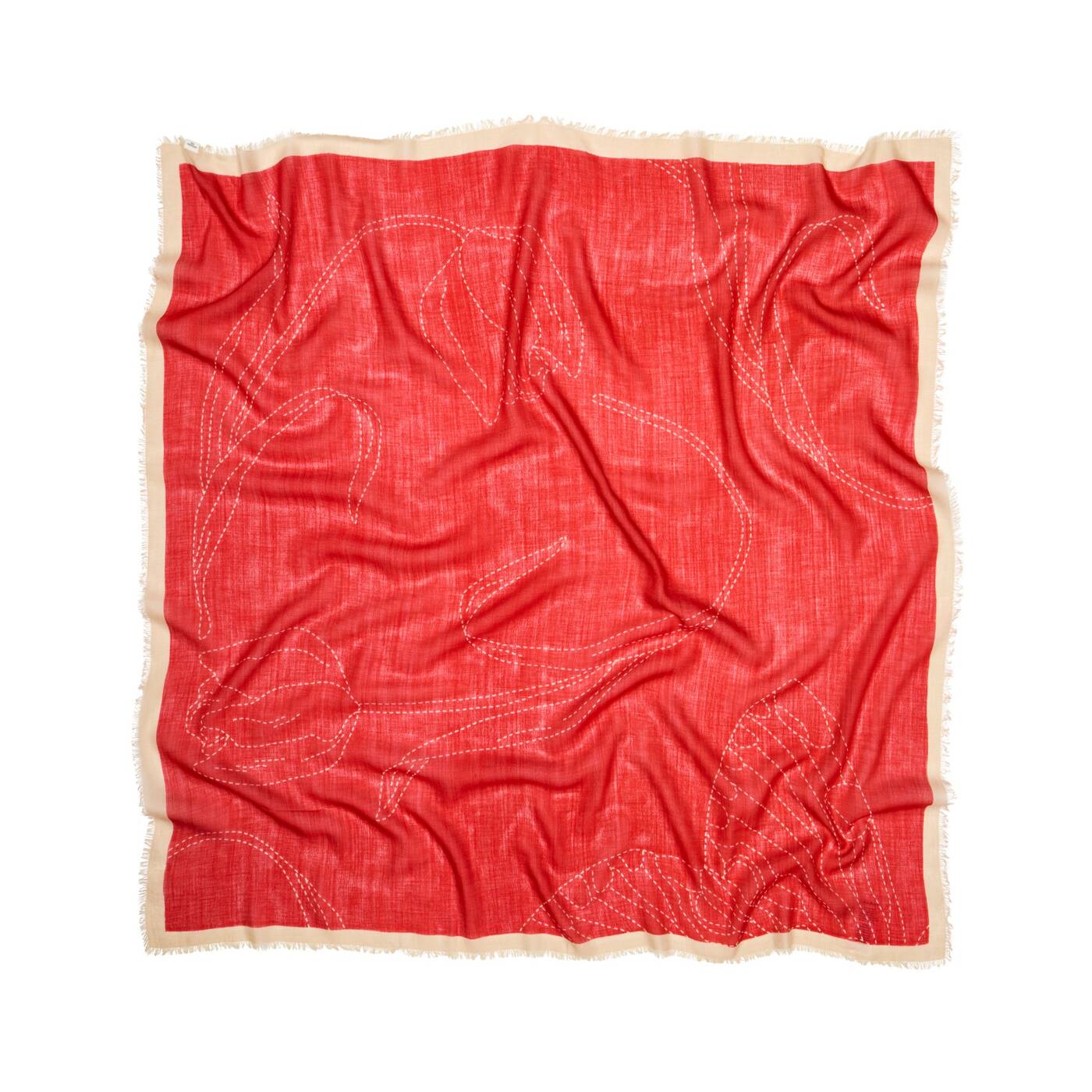 Ein quadratischer Schal (110 x 110 cm) aus 50 % Wolle und 50 % Seide. Er ist weich und angenehm zu tragen – das ganze Jahr über. Der florale Print verleiht ihm eine dezente Note. Tragen Sie ihn um den Hals, im Haar oder an Ihrer Tasche.