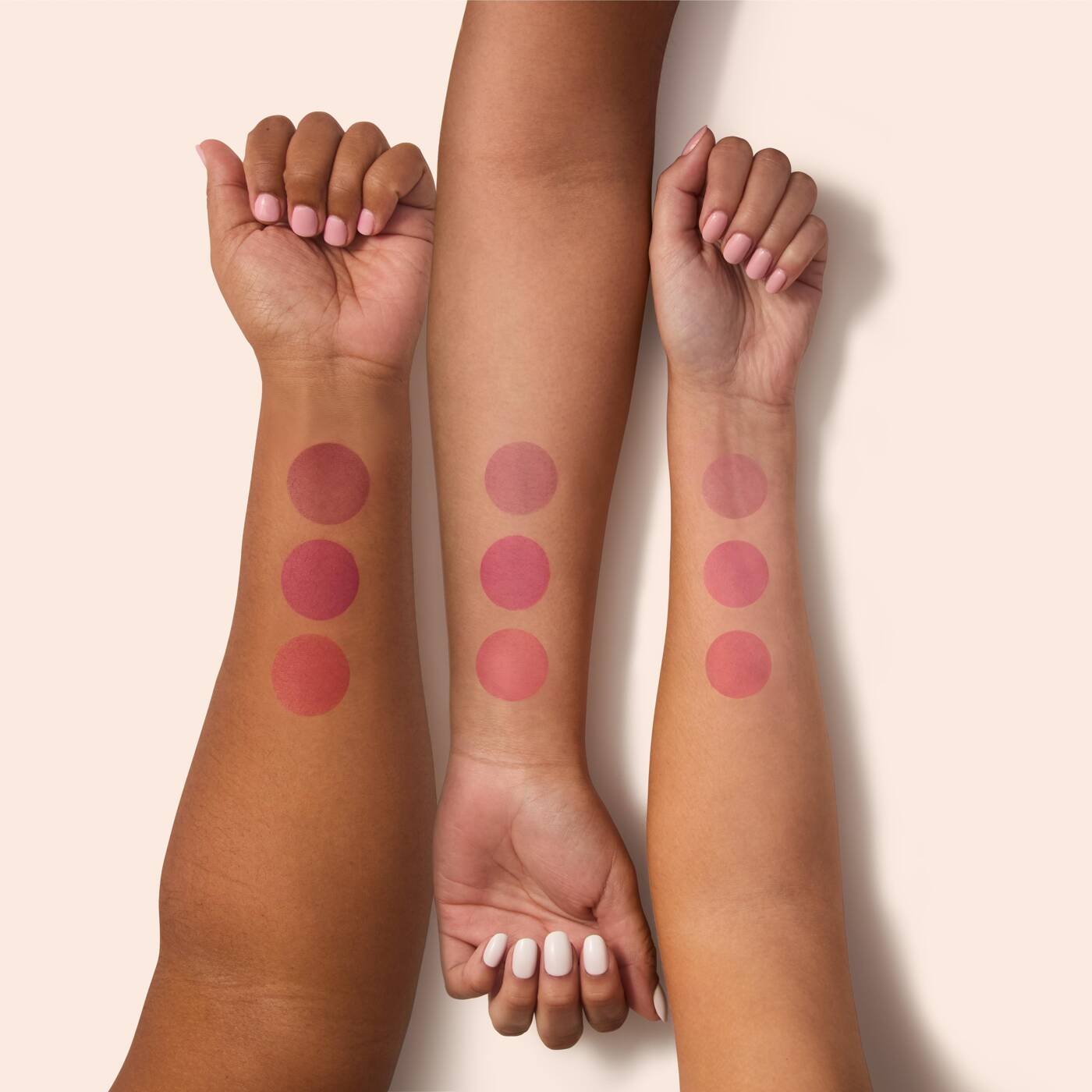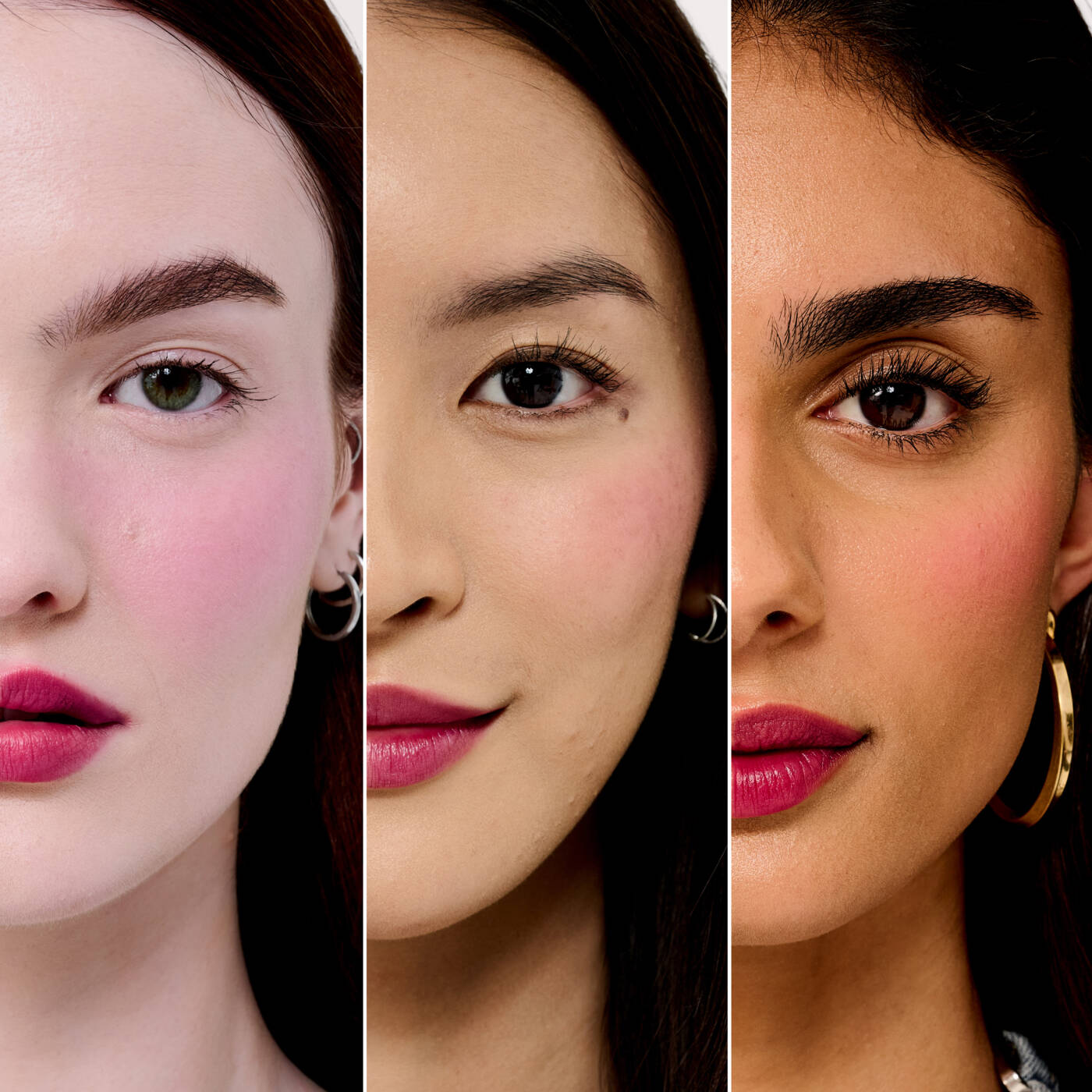 - Auf die Wangen auftupfen und mit den Fingerspitzen schnell verblenden, um eine nahtlose Röte zu erzielen.