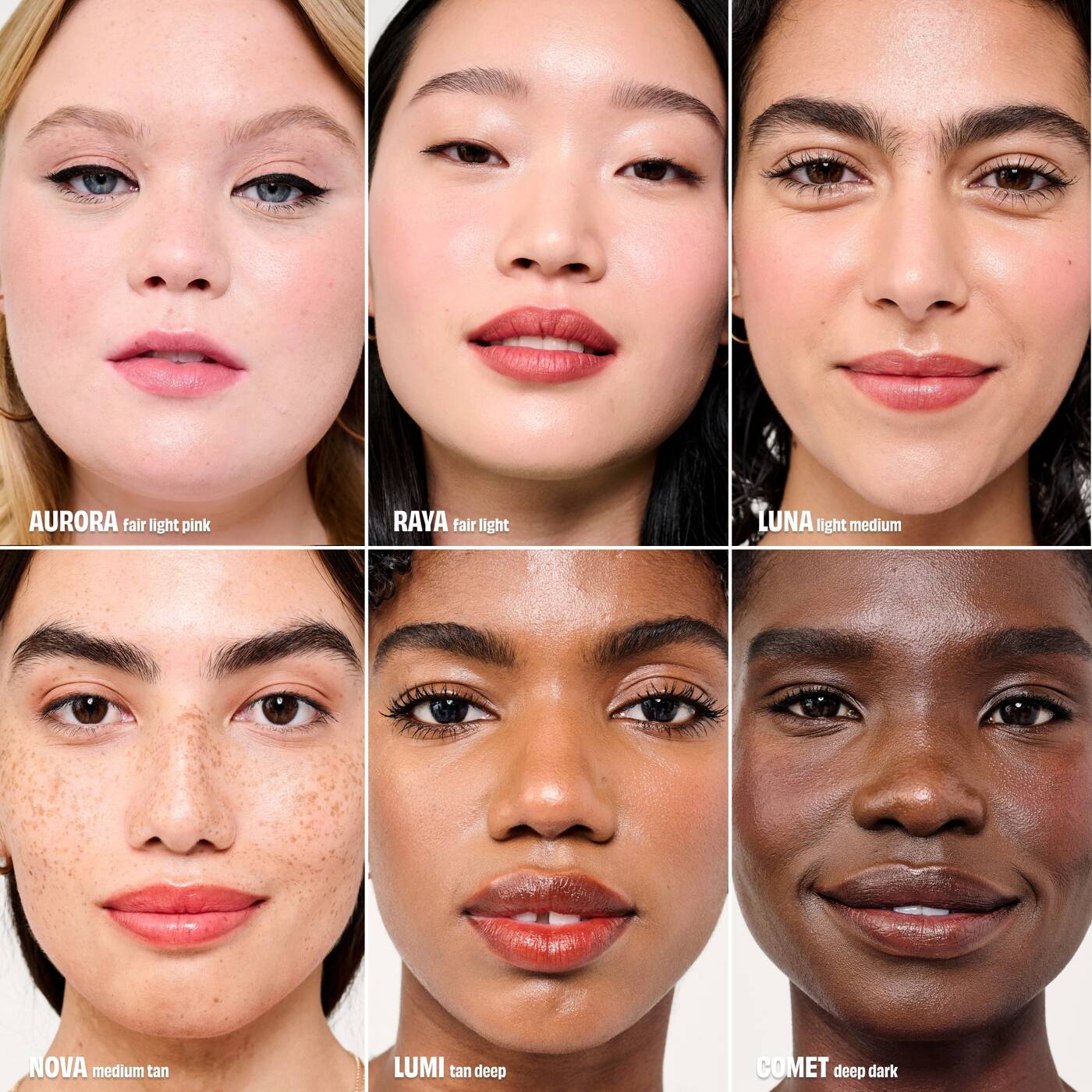 COMET: AQUA (WATER), CAPRYLYL METHICONE, NIACINAMIDE, PROPANEDIOL, ISOAMYL LAURATE, ETHYLHEXYL PALMITATE, POLYSORBATE 60, CETEARYL OLIVATE, MICA, JOJOBA ESTERS, GLYCERIN, CAPRYLIC/CAPRIC TRIGLYCERIDE, SORBITAN OLIVATE, POLYGLYCERYL-3 BEESWAX, ALUMINA, HELIANTHUS ANNUUS (SUNFLOWER) SEED OIL, PENTYLENE GLYCOL, PHENOXYETHANOL, SOYBEAN GLYCERIDES, CETEARYL ALCOHOL, CETYL PALMITATE, SCLEROTIUM GUM, SORBITAN PALMITATE, BUTYROSPERMUM PARKII (SHEA) BUTTER UNSAPONIFIABLES, TOCOPHERYL ACETATE, XANTHAN GUM, SODIUM HYALURONATE, SORBITAN OLEATE, ETHYLHEXYLGLYCERIN, SILICA, TIN OXIDE, ASCORBYL PALMITATE. [+/- CI 77491, CI 77492, CI 77499 (IRON OXIDES), CI 77891 (TITANIUM DIOXIDE)].
