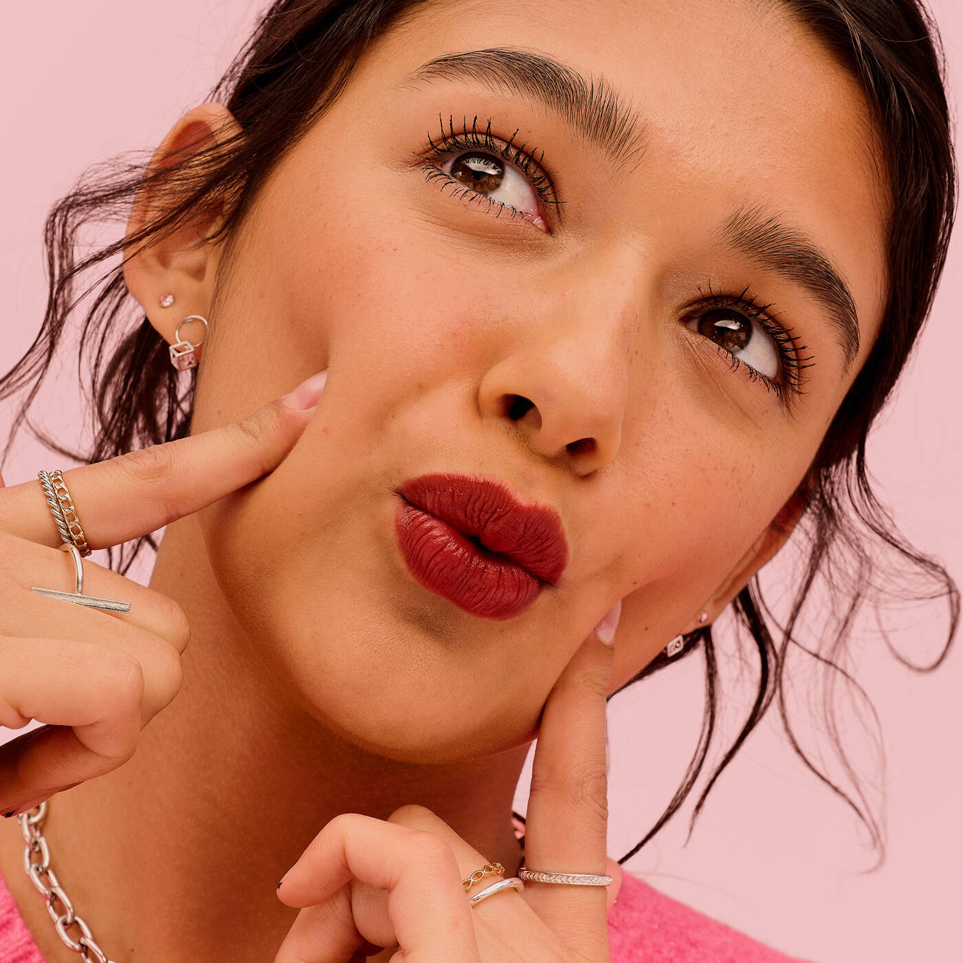 Definiere und konturiere die Lippen mit der Applikatorspitze, fülle sie anschließend aus und verblende die Farbe mit der gebogenen Seite des Applikators. Plushtint mehreren Schichten auftragen, um die Farbe zu intensivieren.