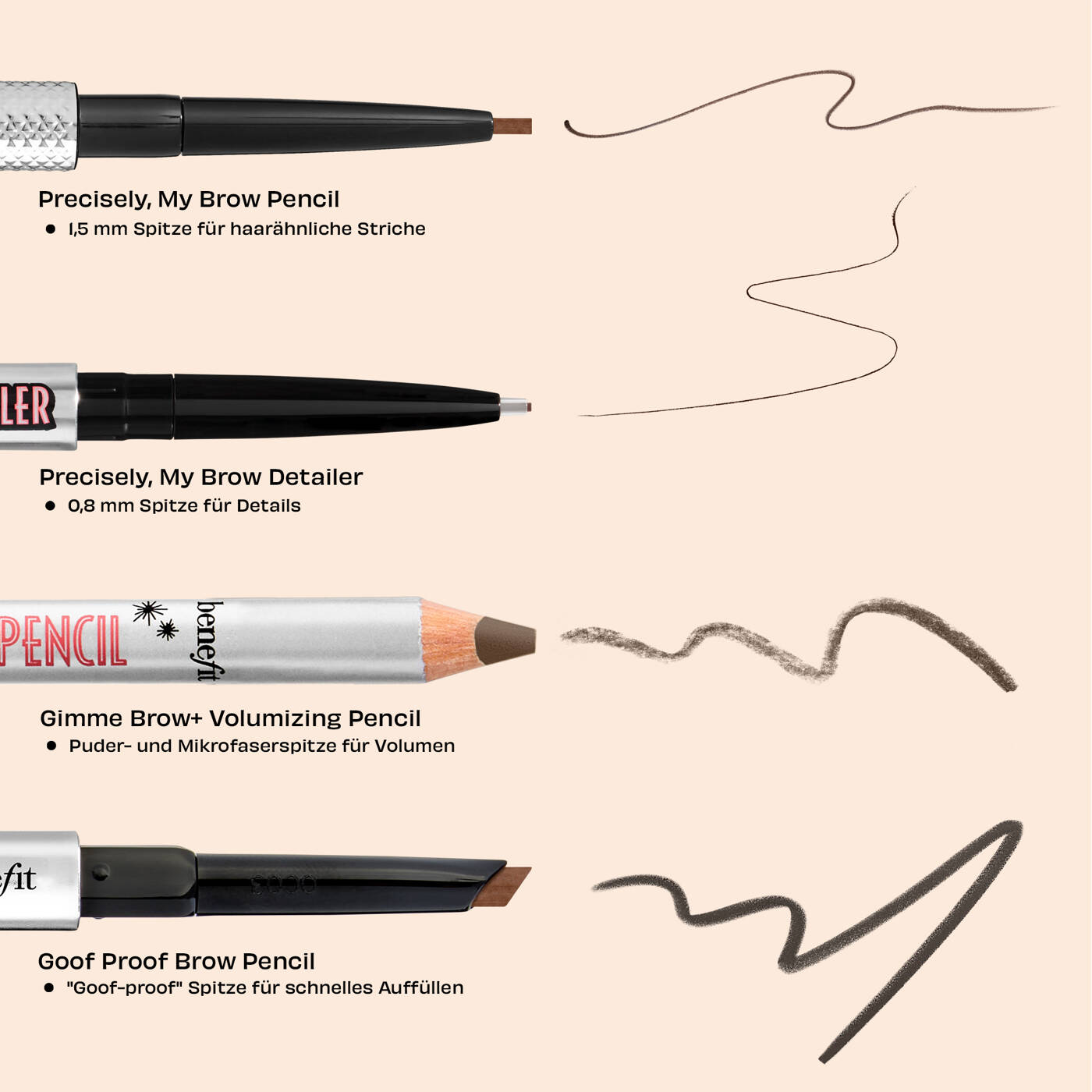 Bereit für maximal definierte Augenbrauen & detailorientierten Perfektionismus? Der Precisely, My Brow Detailer von Benefit Cosmetics ist genau das, wonach du gesucht hast. Das Erfolgsgeheimnis liegt in der winzig kleinen Spitze: Mit nur 0,8 Millimeter hat der Brauenstift die kleinste Spitze auf dem Augenbrauenstift-Markt. Damit zeichnet er mikrofeine, klitzekleine & saubere Linien für einen makellosen und besonders natürlichen Brow Look. Die feste, präzise Spitze mit cremig-weicher Textur gleitet über die Augenbrauen und ermöglicht ein komfortables, kontrolliertes Auftragen. Die aufbaubare Formulierung lässt sich dank des im Stift integrierten Spoolies mühelos verblenden.
