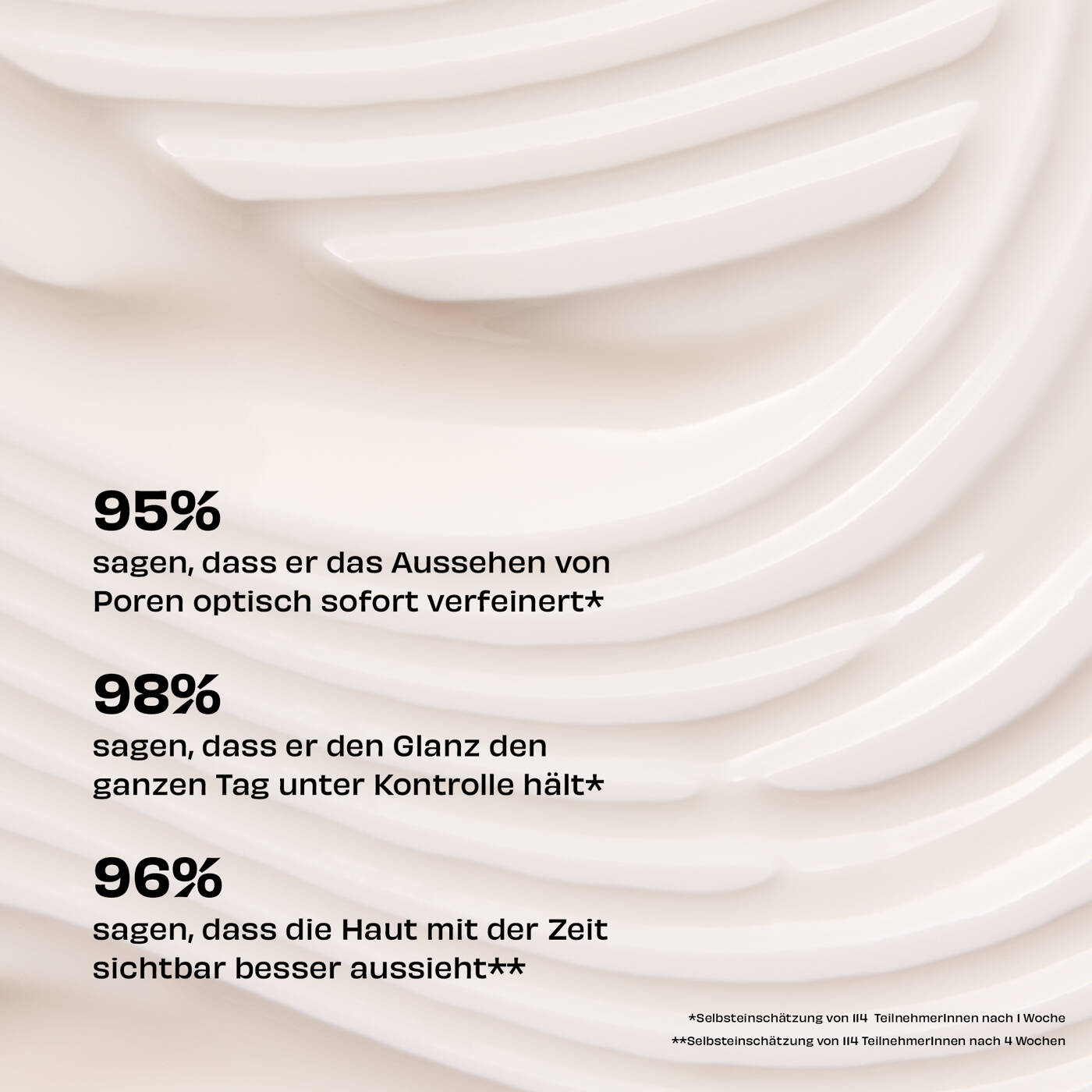- Niacinamid, eine Form von Vitamin B3, spendet der Haut Feuchtigkeit und hilft, das Erscheinungsbild der Poren zu glätten