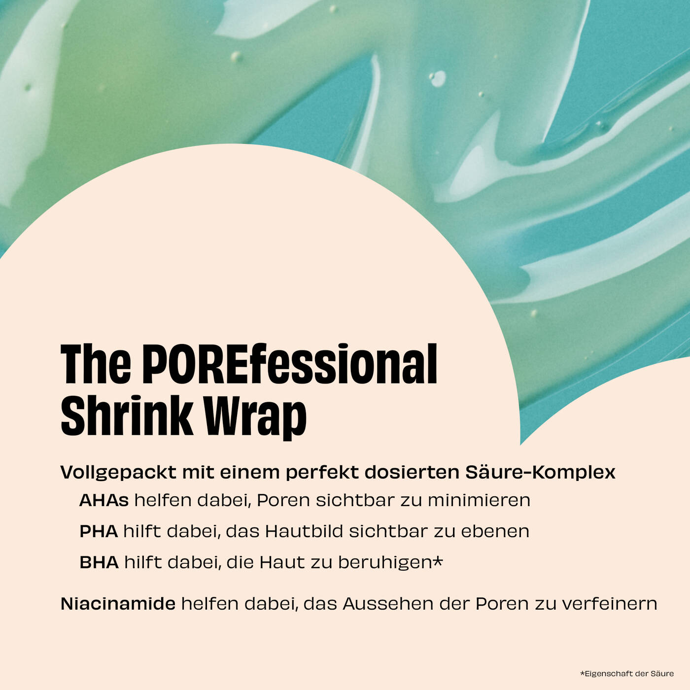 Achte darauf, die Haut vor der Anwendung mit Feuchtigkeit zu versorgen. Wenn deine Haut noch nicht mit Säuren vertraut ist, solltest du The POREfessional Shrink Wrap zunächst einmal pro Woche anwenden.