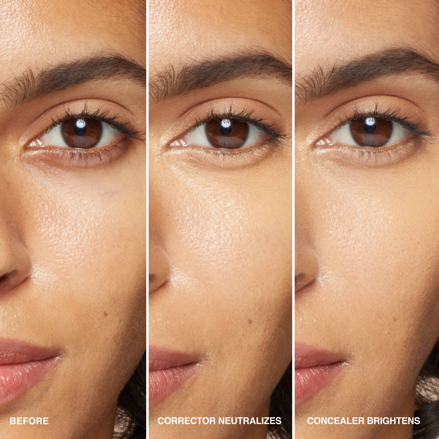 Mühelose Farbkorrektur. Dieser gleitende Stick hilft, Verfärbungen sofort zu neutralisieren und dunkle Augenringe mit einer hautgetreuen Abdeckung aufzuhellen. Die cremige, modulierbare Formel verblasst bei Berührung und wird eins mit der Haut für eine transparente Vorbereitung des Concealers.