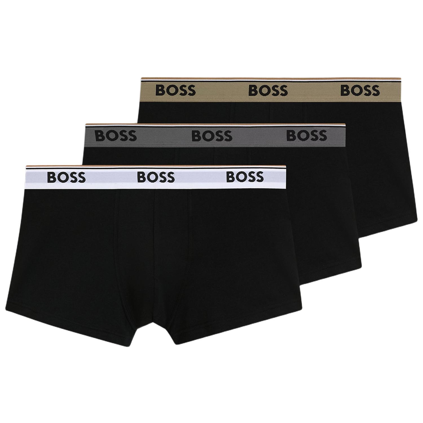 Dreierpack eng anliegender BOSS Boxershorts mit kurzem Bein aus softer Stretch-Baumwolle, die hohen Tragekomfort für jeden Tag bieten. Mittelhoher Bund mit Signature-Streifen und sich wiederholenden Logos.