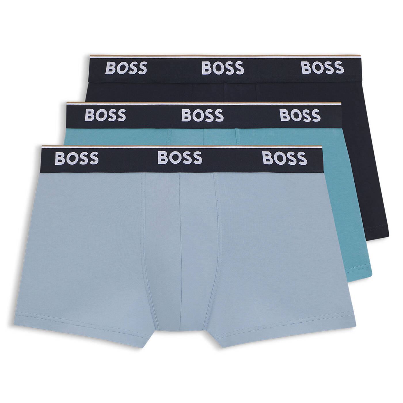 Eng anliegende BOSS Boxershorts mit kurzem Bein, die aus komfortablem Baumwoll-Jersey mit Elasthan-Anteil gefertigt sind. Die Unterwäsche mit mittlerer Bundhöhe ist mit Signature-Streifen und mehreren Logos versehen.