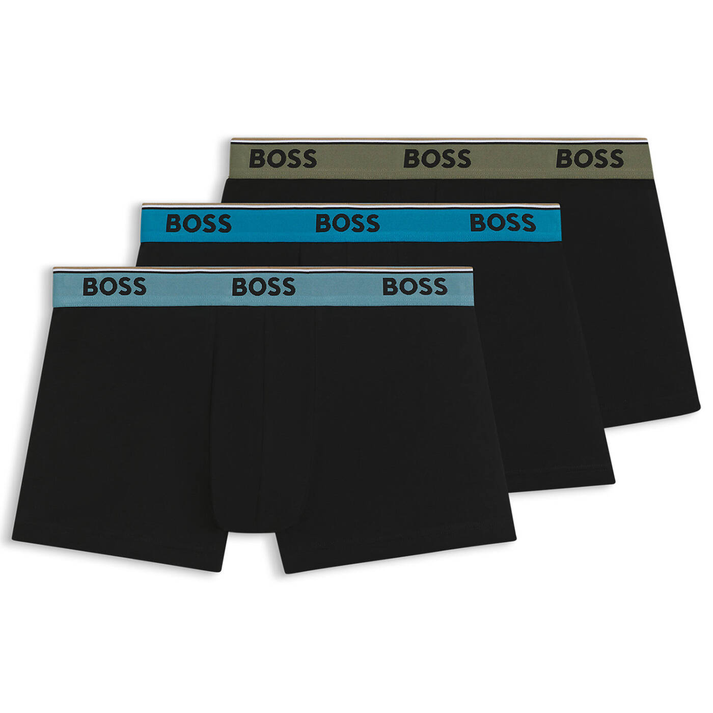 Eng anliegende BOSS Boxershorts mit kurzem Bein, die aus komfortablem Baumwoll-Jersey mit Elasthan-Anteil gefertigt sind. Die Unterwäsche mit mittlerer Bundhöhe ist mit Signature-Streifen und mehreren Logos versehen.