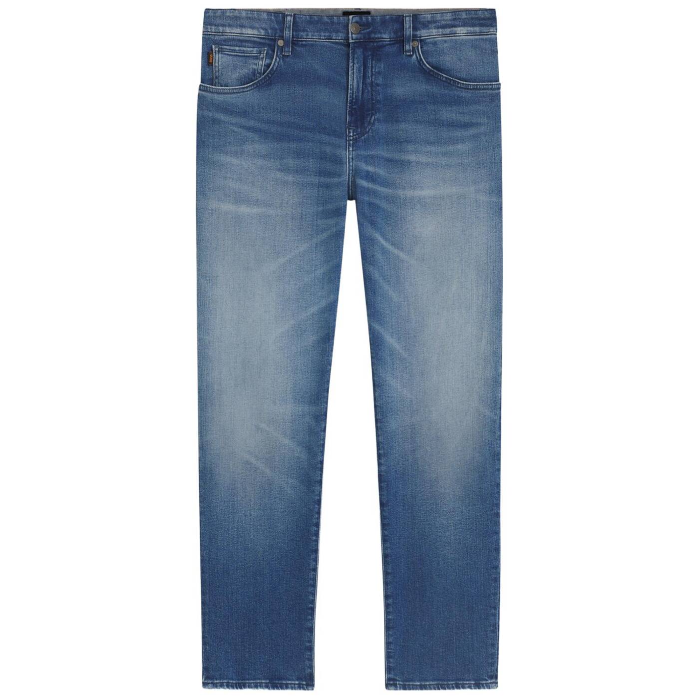 Die boss jeans mit strukturiertem effekt und gelaserten treatments überzeugt mit authentischen details. gerade passform. aus komfortablem stretch-denim in blau.