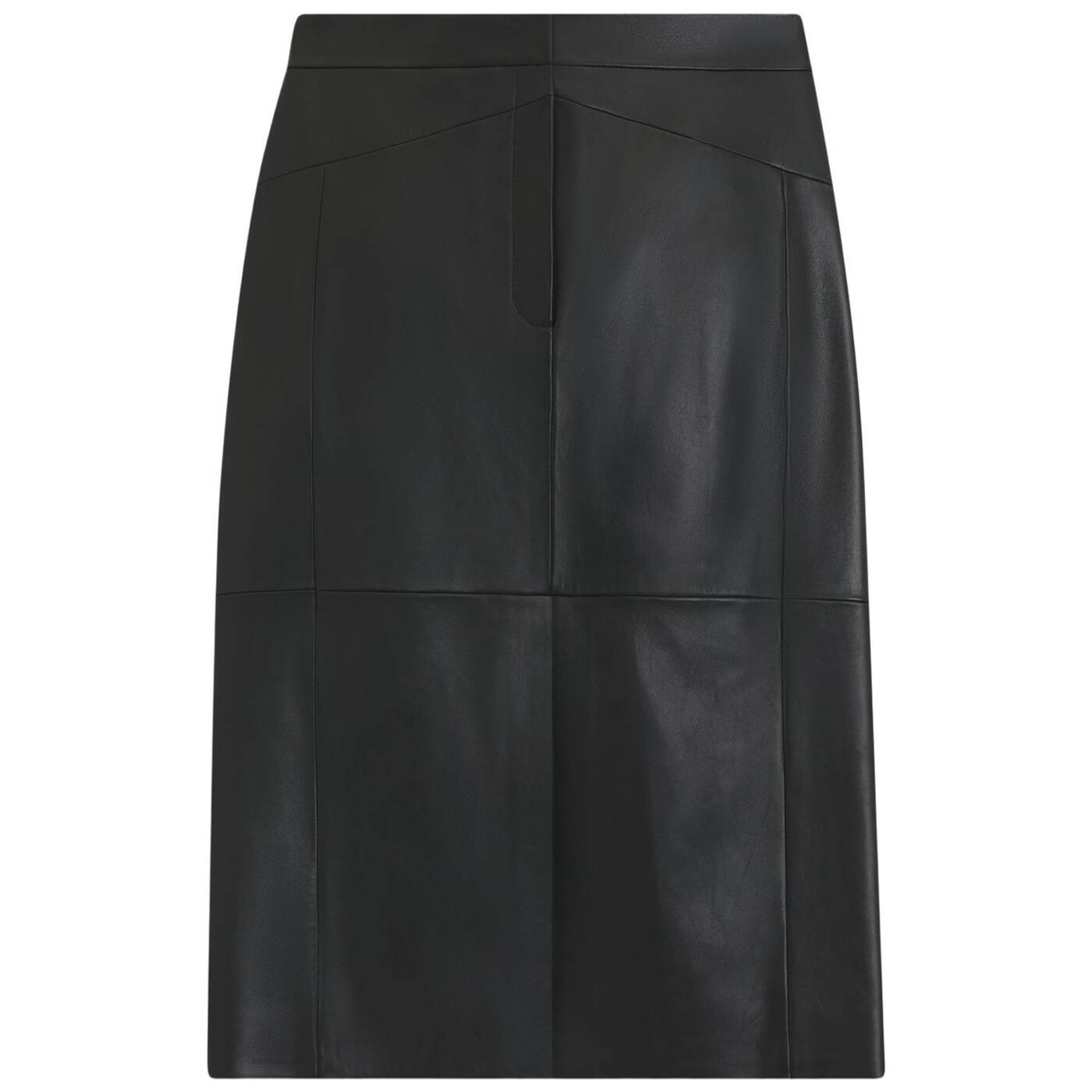 Create elegant looks with the slim cut and rich lustrous leather of this boss womenswear pencil skirt. logo rivet and seam details. this product contains at least 60% better raw materials. we continuously look for more responsible ways to produce and finish our products. a minimum of 60% of the leather used to make this product has been sourced from certified tanneries.