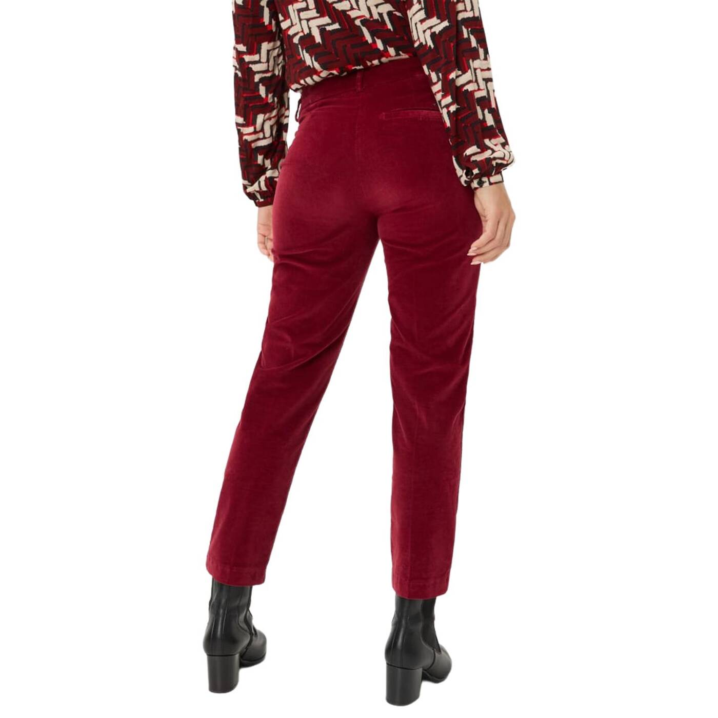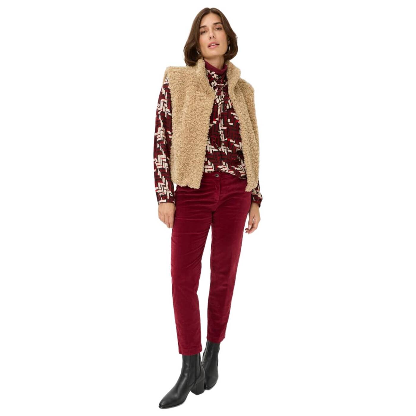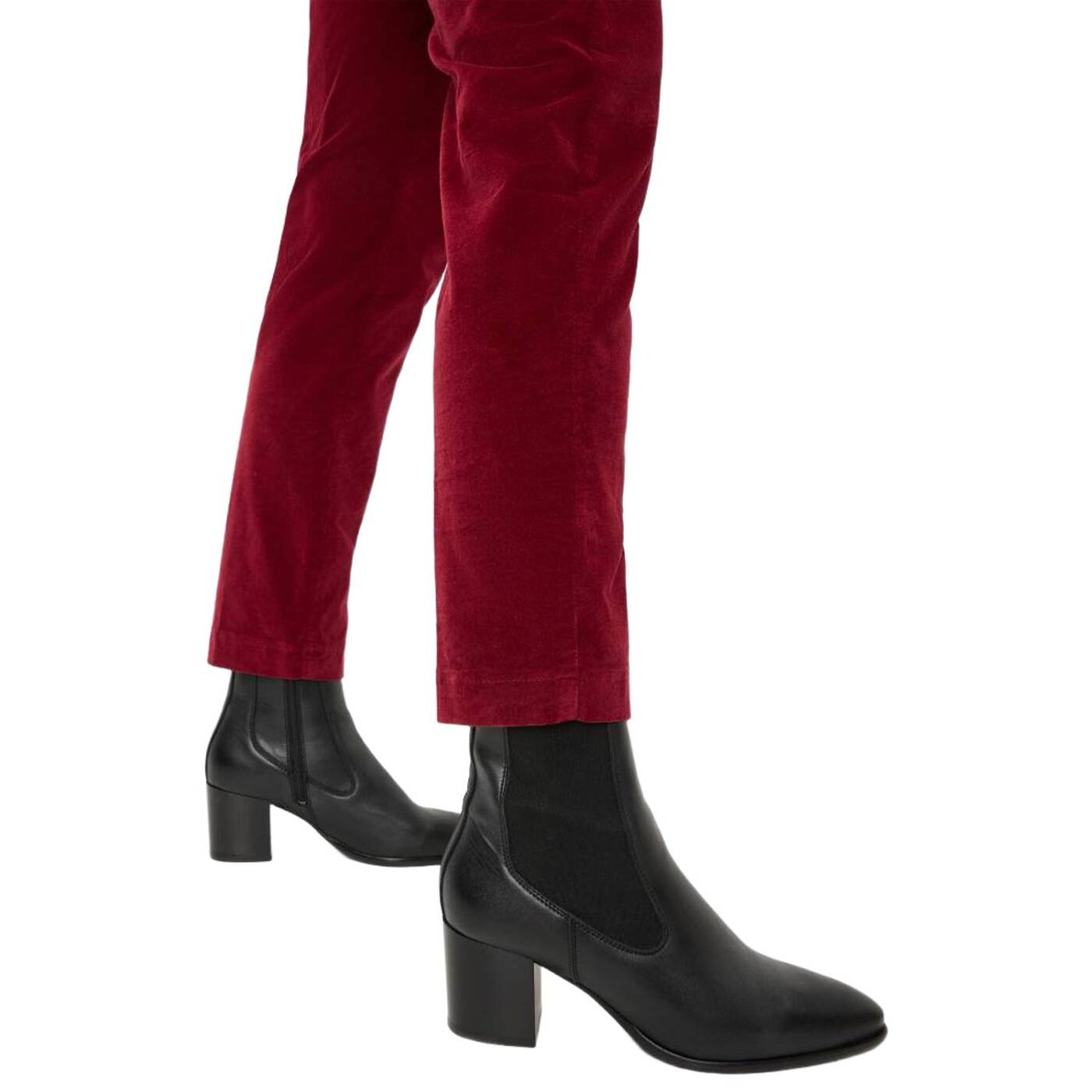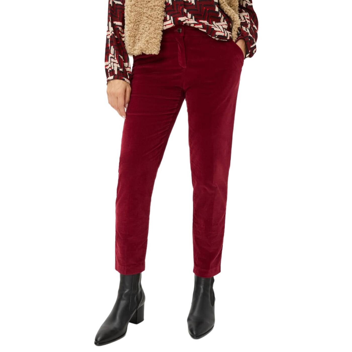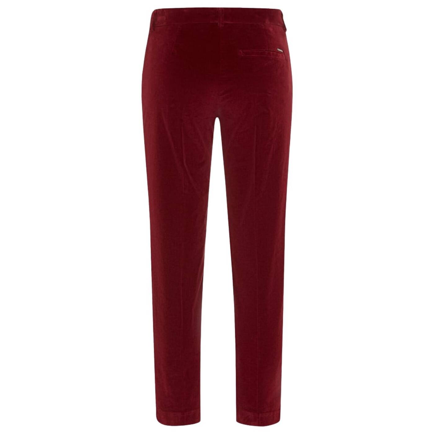 Die Chino im STYLE MARON S ist ein stilvolles Statement für alle, die klassischen Chic mit einem modernen Twist lieben. Mit ihrer eleganten, leicht verkürzten Form und der konischen Silhouette bringt diese Damenhose stilvolle Raffinesse. Die klare Linienführung mit schmal zulaufendem Bein streckt optisch und schmeichelt der Figur. Klassische Details wie französische Eingrifftaschen und einer Leistentasche am Gesäß betonen die gepflegte Ausstrahlung. Der Bund mit Knopf- und Reißverschluss garantiert eine komfortable Passform mit normaler Leibhöhe. Der edle Oberstoff aus Samt verleiht der Hose eine luxuriöse Note mit weichem Griff und dezentem Glanz. Samt entsteht durch eine spezielle Webtechnik, bei der aufgeschnittene Schlingen einen samtigen Flor bilden – das Ergebnis ist eine Oberfläche, die sowohl visuell als auch haptisch überzeugt. Die Materialkomposition aus Baumwolle, Viskose und Elasthan verbindet natürliche Atmungsaktivität mit geschmeidigem Fall und einem Hauch Elastizität für mehr Bewegungsfreiheit.