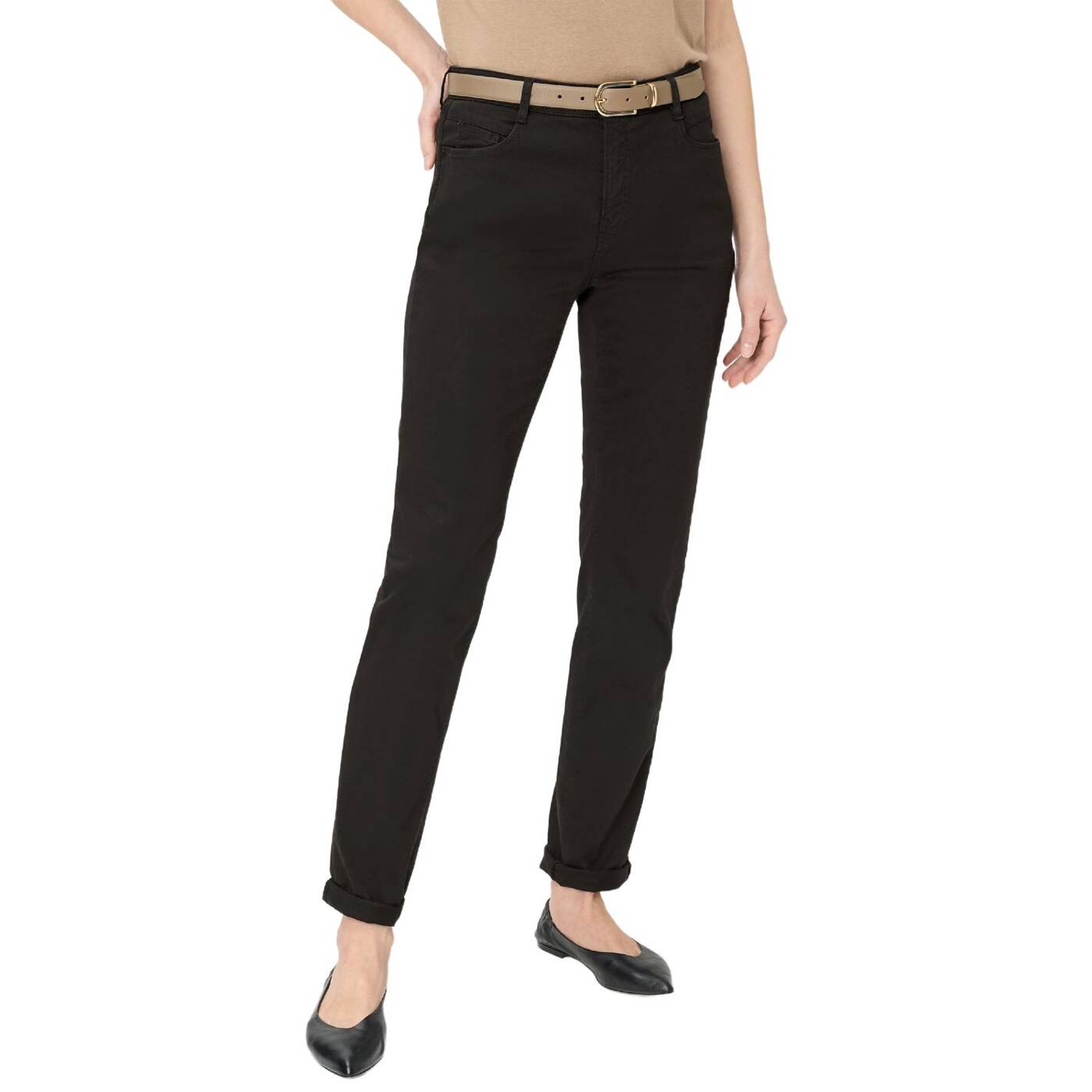 Ein unverzichtbarer klassiker. die elegante five-pocket-hose im style carola vereint höchsten tragekomfort mit zeitloser ästhetik. ihre gerade form im feminine fit mit normaler leibhöhe schmeichelt der weiblichen silhouette und bietet eine optimale passform. praktische einschubtaschen, eine kleine coinpocket und die aufgesetzten gesäßtaschen runden das klassische design ab. dezente strass-details verleihen der damenhose eine stilvolle note. gefertigt aus hochwertigem satin, besticht die hose durch ihre glatte haptik und den dezenten glanz. die spezielle superior cotton-qualität verspricht ein außergewöhnliches tragegefühl: baumwolle sorgt für atmungsaktivität, lyocell für geschmeidigkeit und elasthan garantiert angenehme bewegungsfreiheit. mit ihrer gepflegten optik und der vielfältigen farbpalette empfiehlt sich diese five-pocket für ein stilvolles outfit.