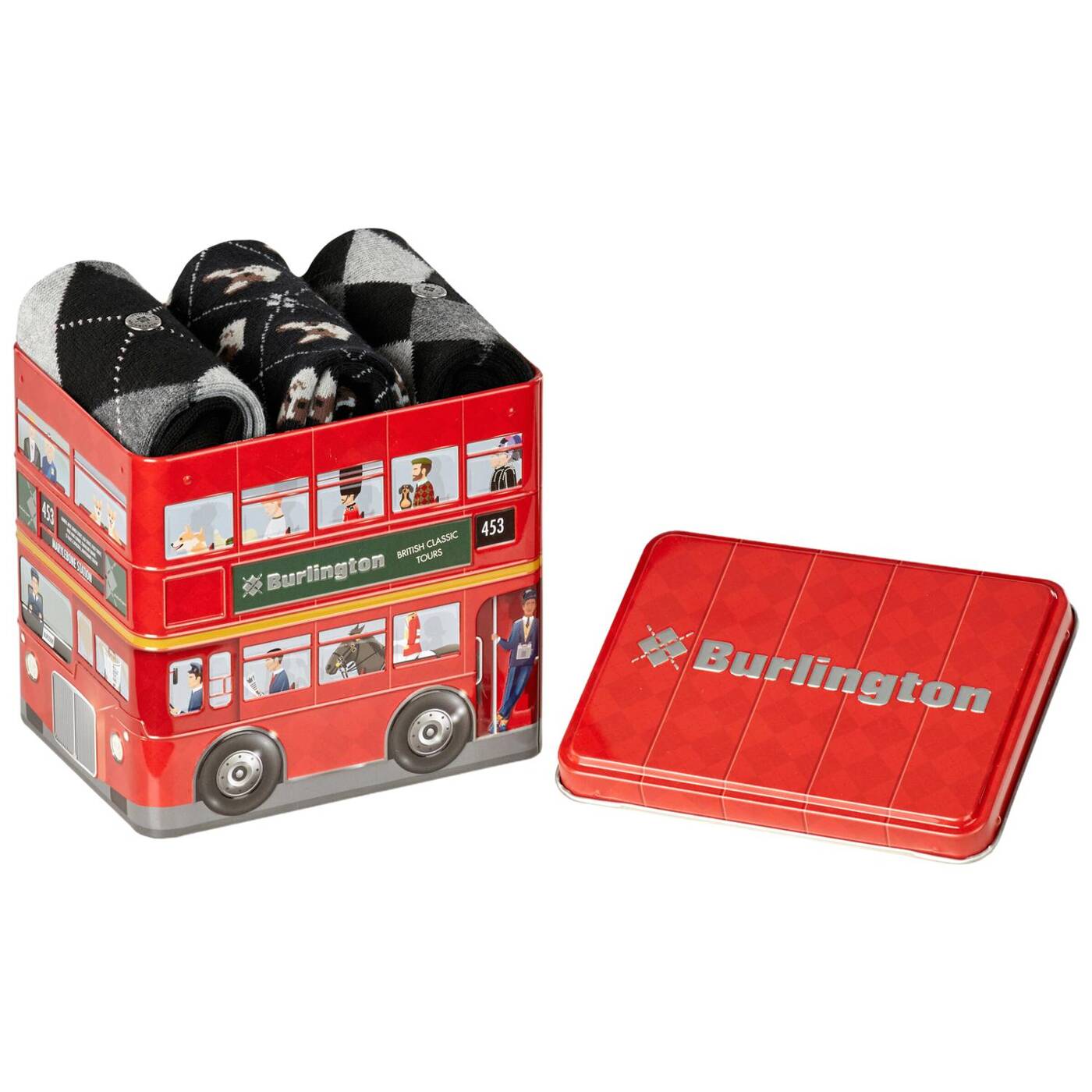 Die London-Geschenkbox im Look des ikonischen roten Doppeldeckerbusses verkörpert britischen Stil in seiner charmantesten Form. Gefüllt mit drei Paar hochwertigen Burlington-Strümpfen aus feiner Baumwolle, enthält sie die Burlington All-time-Favorites.