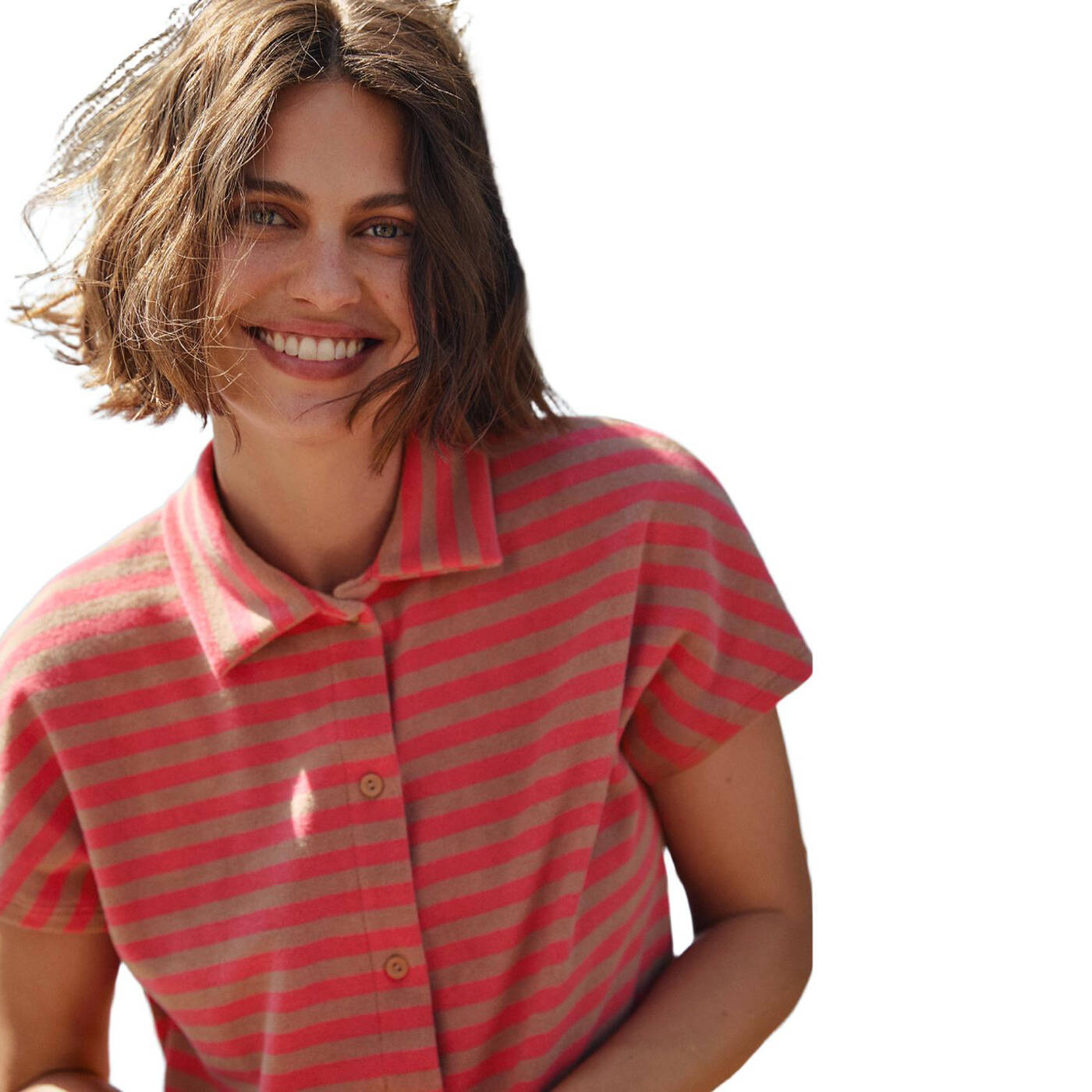 • Angenehm lockerer Schnitt mit Hemdkragen und V-Ausschnitt