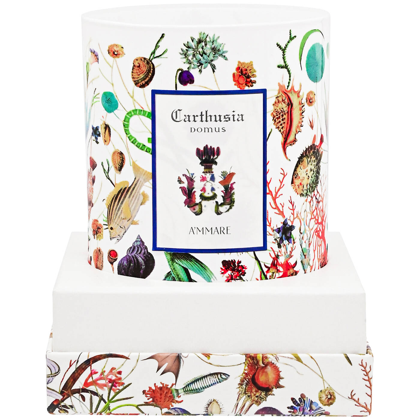Carthusia A'mmare Candle ist eine meeresartige Kerze. Eine Kerze mit einem hellen, aromatischen Duft, der an die Leichtigkeit einer zarten Sommerromanze erinnert. Das Bild, das die A'mmare Candle hervorruft, ist der blaue Horizont. Helle, sonnige Bergamotte trifft auf Rosmarin. Aromatisch, zuweilen scharf. Ein Bad im salzigen Meer erfrischt, macht Platz für das Neue, das sich nähert. Minzblätter, sanfte Weichheit, Grün. Verborgene Energie. Jetzt ist der Blick gesättigt, der Horizont ist vollständig. Zedernholz und Guajakholz umhüllen und schützen Patchouli und Moschus, wie Geschenke, die aus der Ferne kommen. Die Magie des Märchens erfüllt sich, überall. A'mmare spiegelt ihn wider...