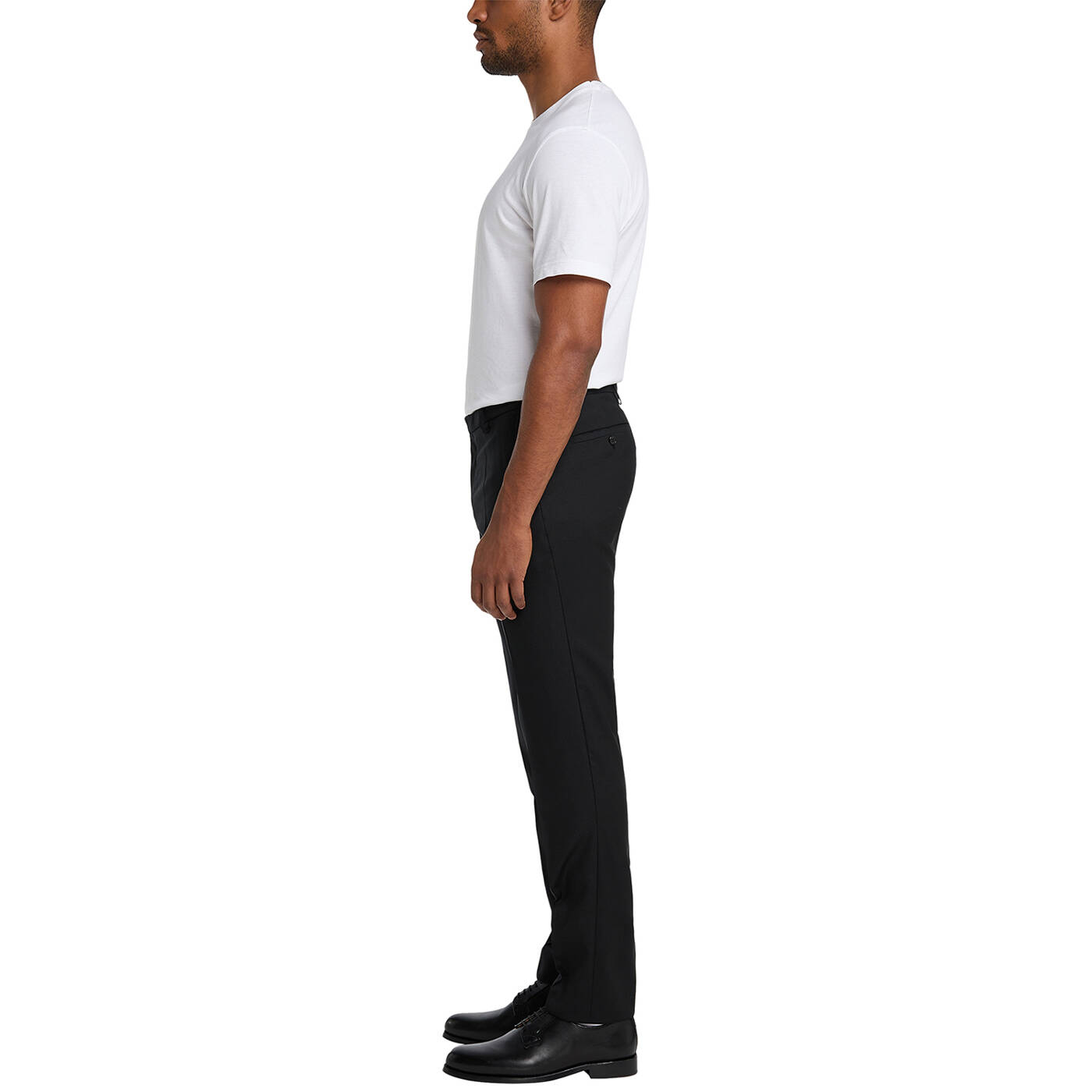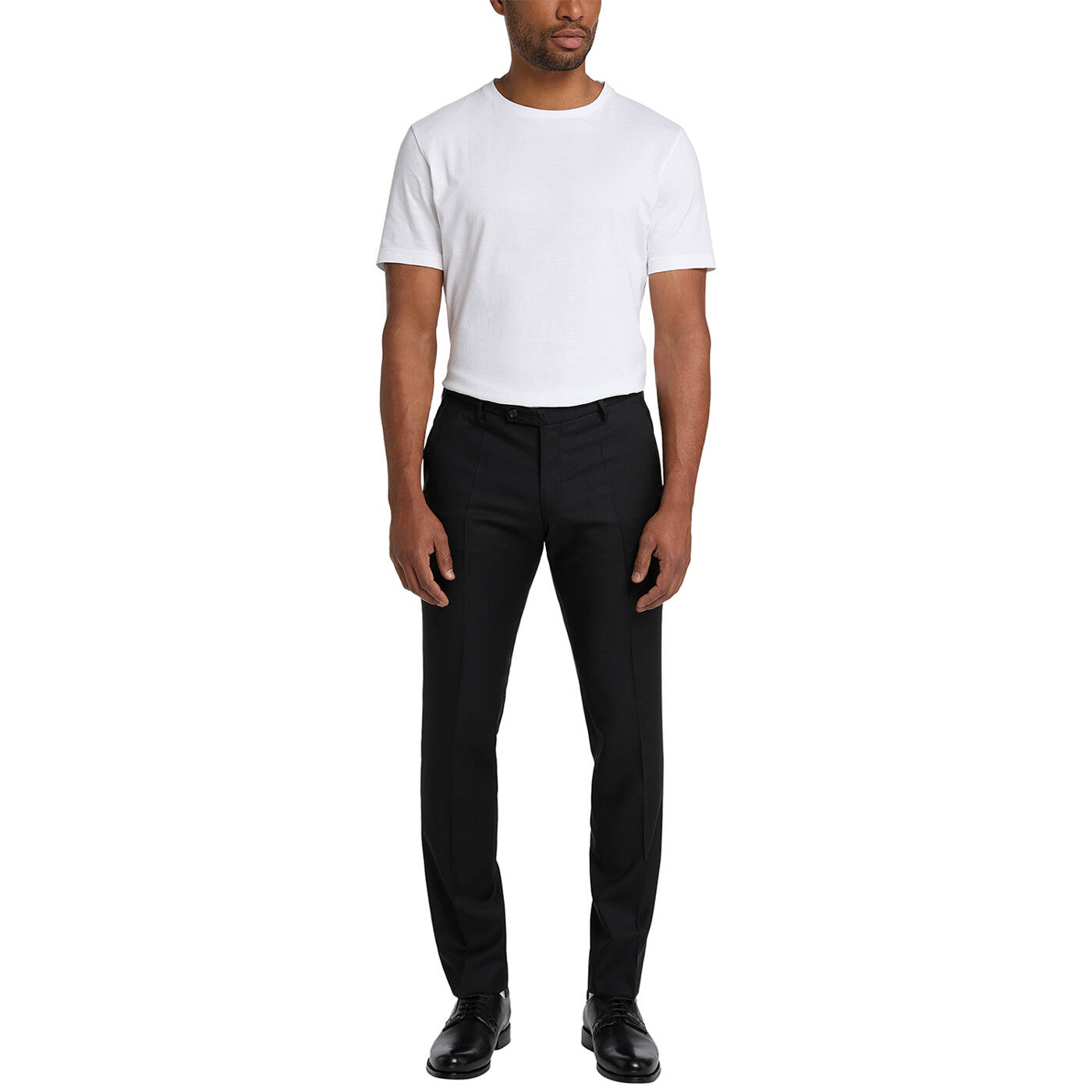 Die Hose besticht durch einen formellen, eleganten Schnitt mit schlankem, geradem Design, das eine schlanke Silhouette betont. Sie verfügt über seitliche Taschen, einen breiten, flachen Bund und eine sauber gestaltete Knopfleiste, die den klassischen Anzugstil unterstreichen. Der Saum ist unaufdringlich gehalten, was den minimalistischen und hochwertigen Gesamteindruck abrundet.