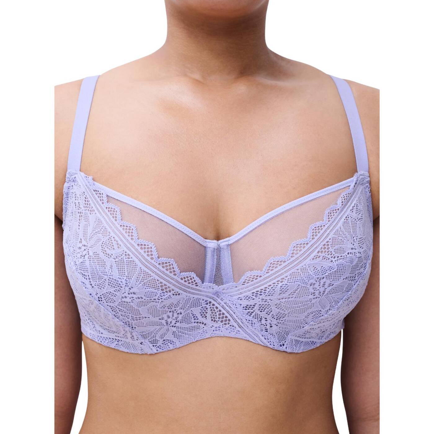 * die perfekte mischung aus weiblichkeit und komfort durch die kombination von floraler spitze und ultraweichem mesh. beruhigende formen für optimalen halt bis zum hcup. gekreuzte spitze für einen "wrapover"effekt. flache und nahtlose abschlüsse für maximalen komfort. umweltfreundliche linie.