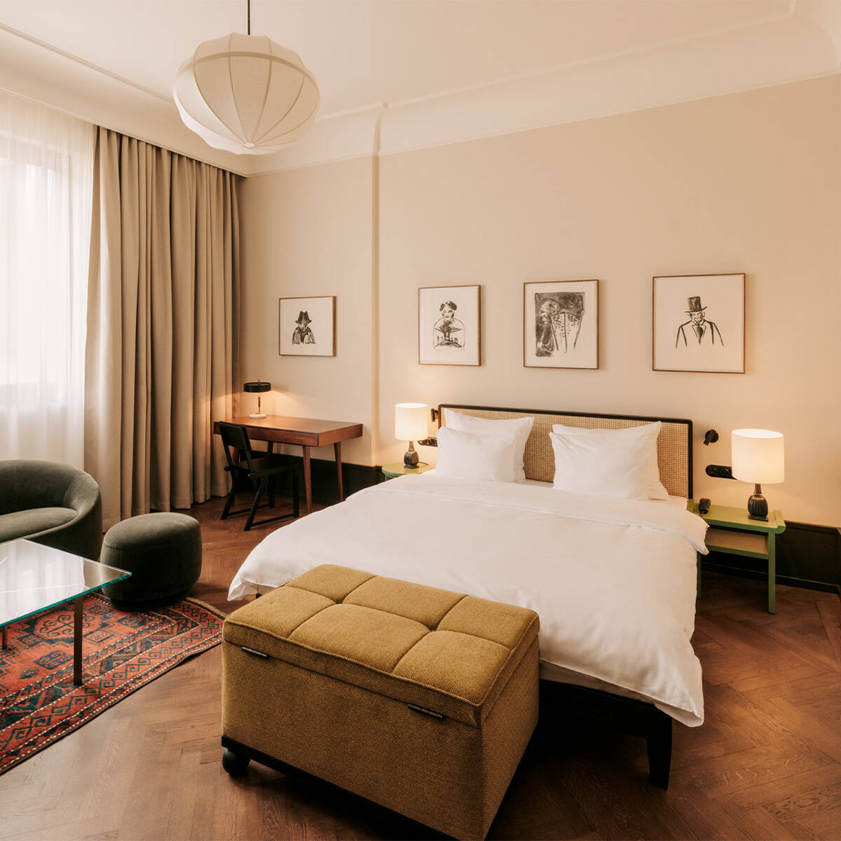 Das Boutique Hotel CHÂTEAU ROYAL in der Mitte Berlins ist ein Ort, der sich üblichen Beschreibungen und Floskeln entzieht. Gemacht von Berlinern, die die Stadt kennen und zwischen den historischen Mauern die Dinge zusammengebracht haben, die sie lieben. Die perfekte Lage in Laufnähe zum Brandenburger Tor, die betörend schönen Räume und vor allem die markanten Arbeiten befreundeter zeitgenössischer Künstler*innen, die in der Bar, im Restaurant, in den Fluren und in den Zimmern und Suiten hängen und stehen. Das Restaurant im CHÂTEAU ROYAL ist eine kulinarische Verlängerung des Hotels: qualitätsversessen und entspannt, genussvoll und undogmatisch. Eine weltoffene, moderne, mediterrane Küche, eine Speisekarte, die nichts kennt außer Lieblingsgerichte. Wer al Fresco genießen möchte, findet im herrlichen Innenhof oder auf der Dachterrasse mit Blick auf die Reichstagskuppel einen idealen Platz zum Verweilen. Die lebendige Hotel Bar ist das Herz des Hotels, hier werden Cocktail Klassiker kreativ in Szene gesetzt, neu interpretiert und mit einer ganz eigenen persönlichen Note versehen.