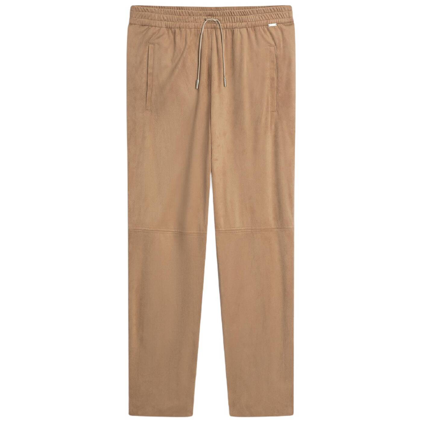 Lässige jogpants aus weichem material in veloursleder-optik. der elastische bund mit tunnelzug sorgt für hohen tragekomfort, während das schmal zulaufende bein und die teilungsnähte einen modernen look schaffen. ideal für stilvolle casual-outfits mit sportivem touch.
