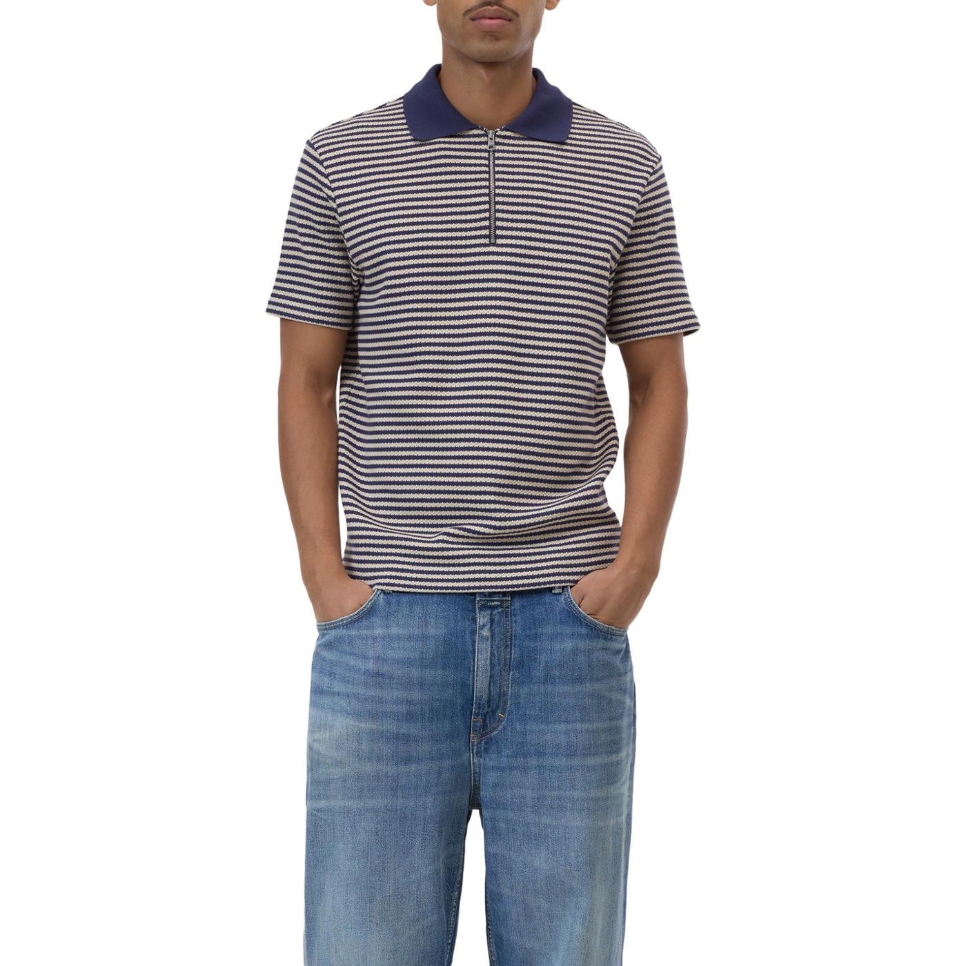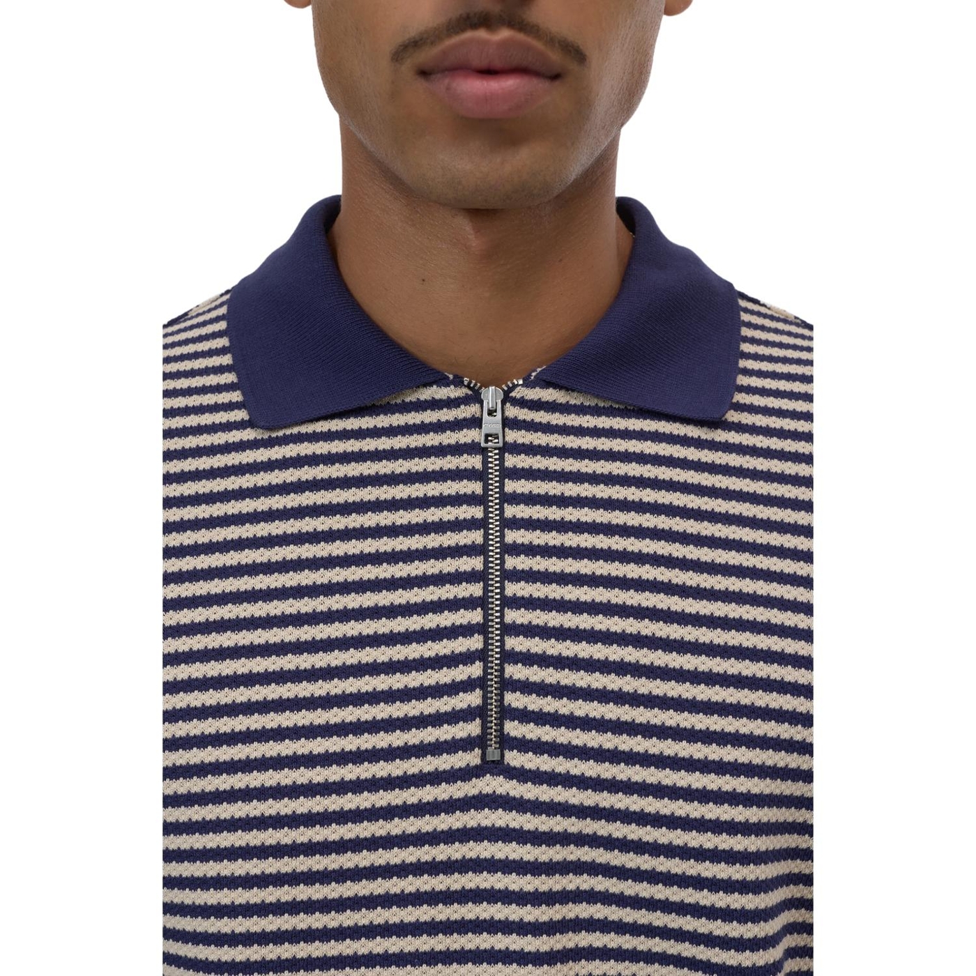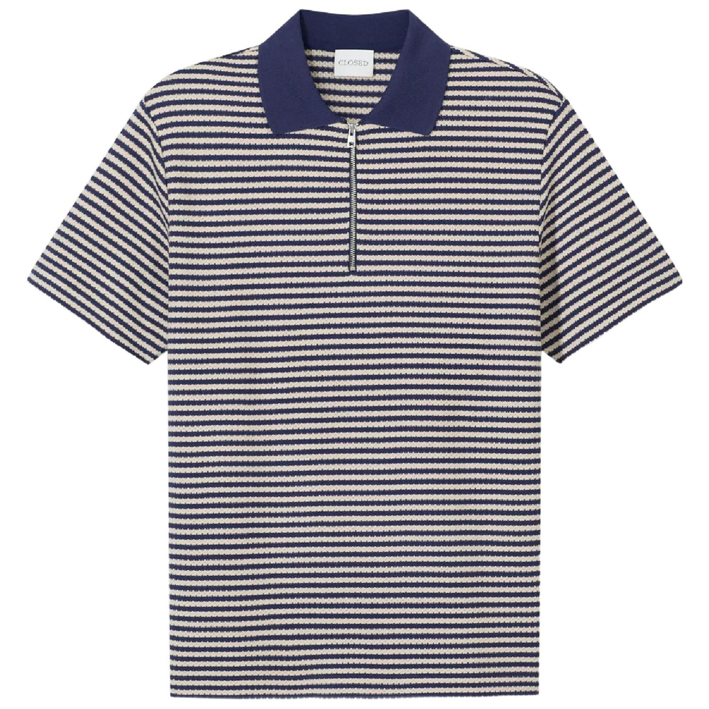 Dieses Polo aus hochwertigem, strukturiertem Baumwoll-Material mit Streifenmuster ist in Portugal gefertigt. Das Shirt mit regulärer Passform und geradem Saumabschluss hat einen spitzen, einfarbigen Kragen mit Reißverschluss. Mit Flag-Label an der Seitennaht.