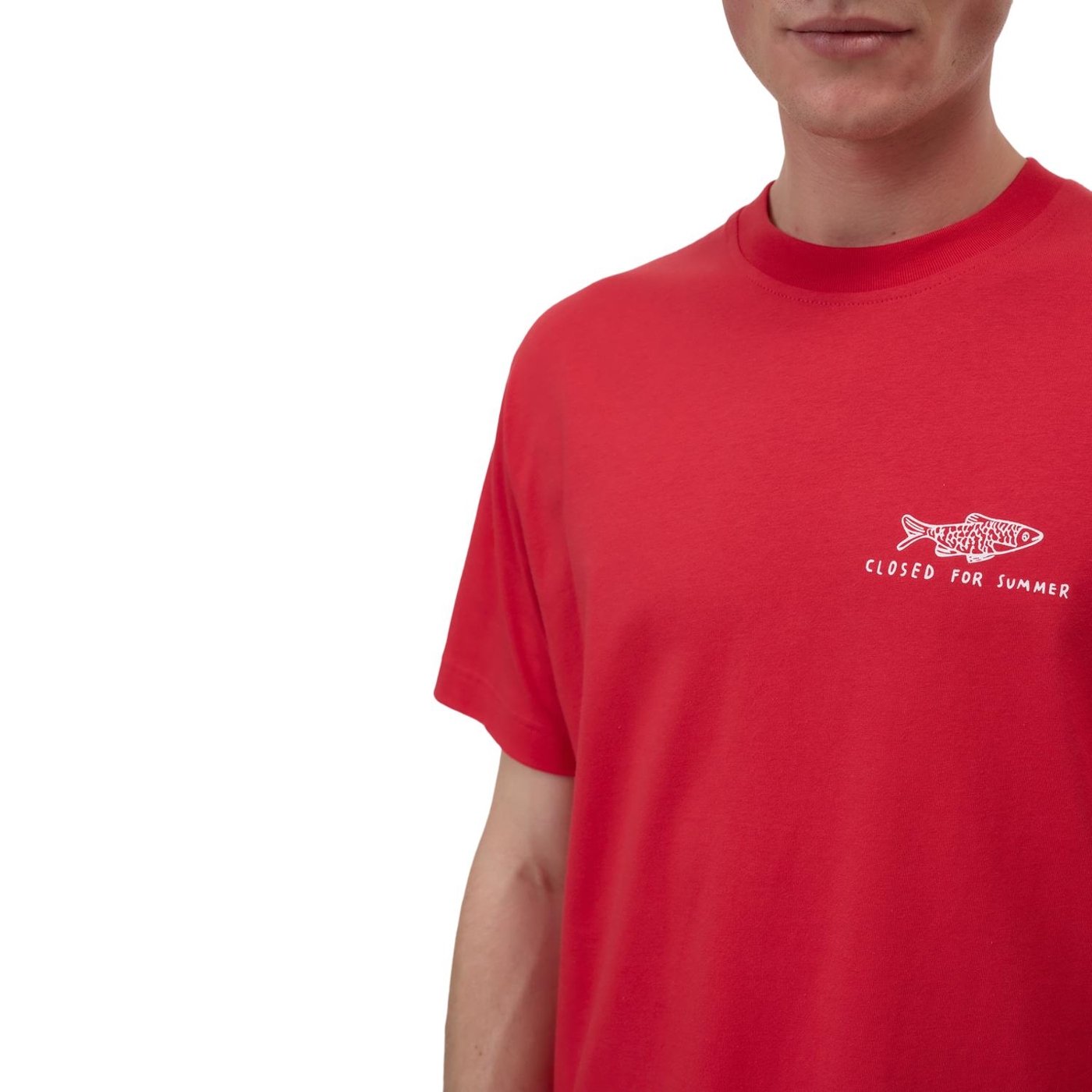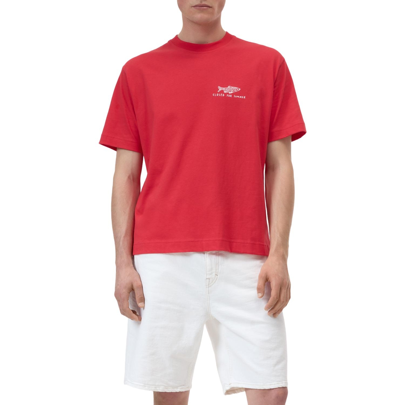Aus reiner Bio-Baumwolle gefertigt, ist dieses T-Shirt für seinen besonderen Look im Stück- und Pigmentfärbeverfahren behandelt. Es hat eine reguläre Silhouette mit Rundhalsausschnitt und einen Fisch-Print mit "Closed for Summer"-Schriftzug auf der Brust.
