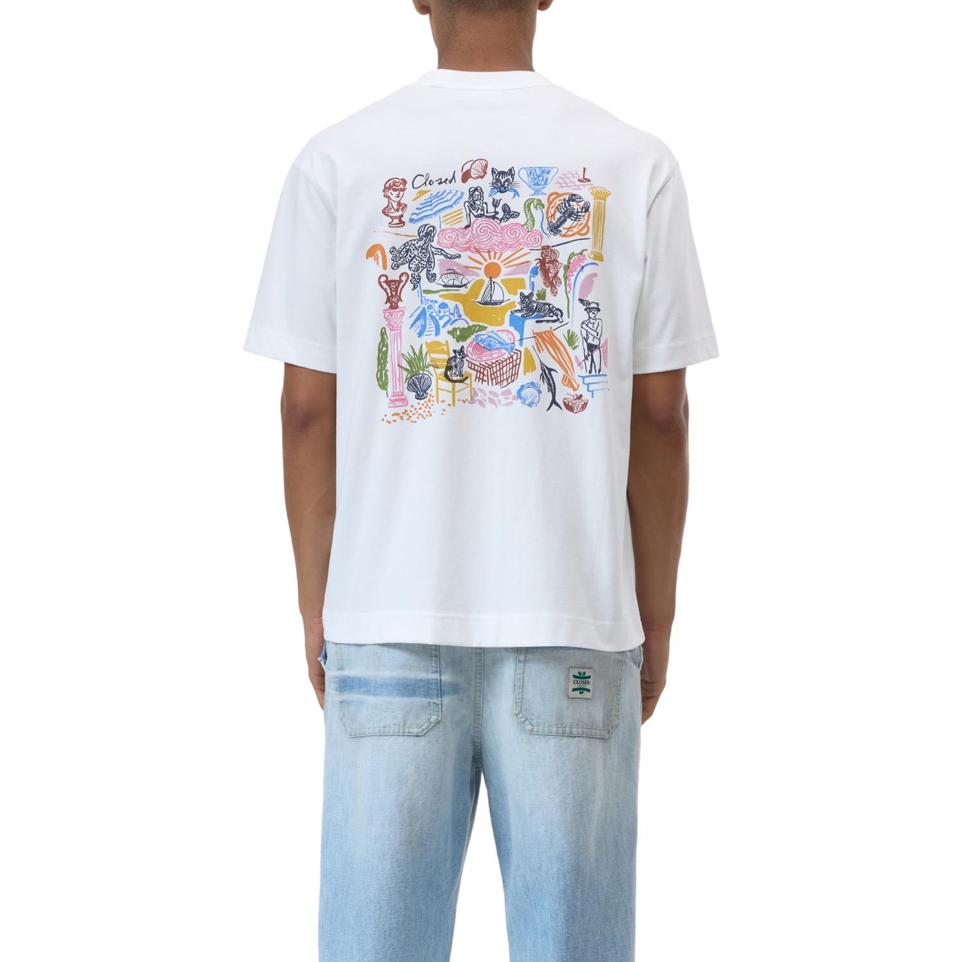 Der cleane, kompakte Single-Jersey aus 100% Bio-Baumwolle erhält durch die spezielle Stück- und Pigmentfärbung seinen besonderen Charakter. Das T-Shirt in regulärer Passform zeigt unseren sommerlichen, von Griechenland inspirierten Print auf dem Rücken, während ein dazu passendes Logo auf der Brust platziert ist.