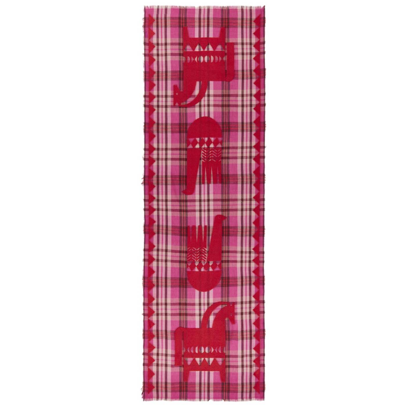Premium Schal aus Woll-Baumwoll-Mischung mit Karomuster und stilisierten Tieren