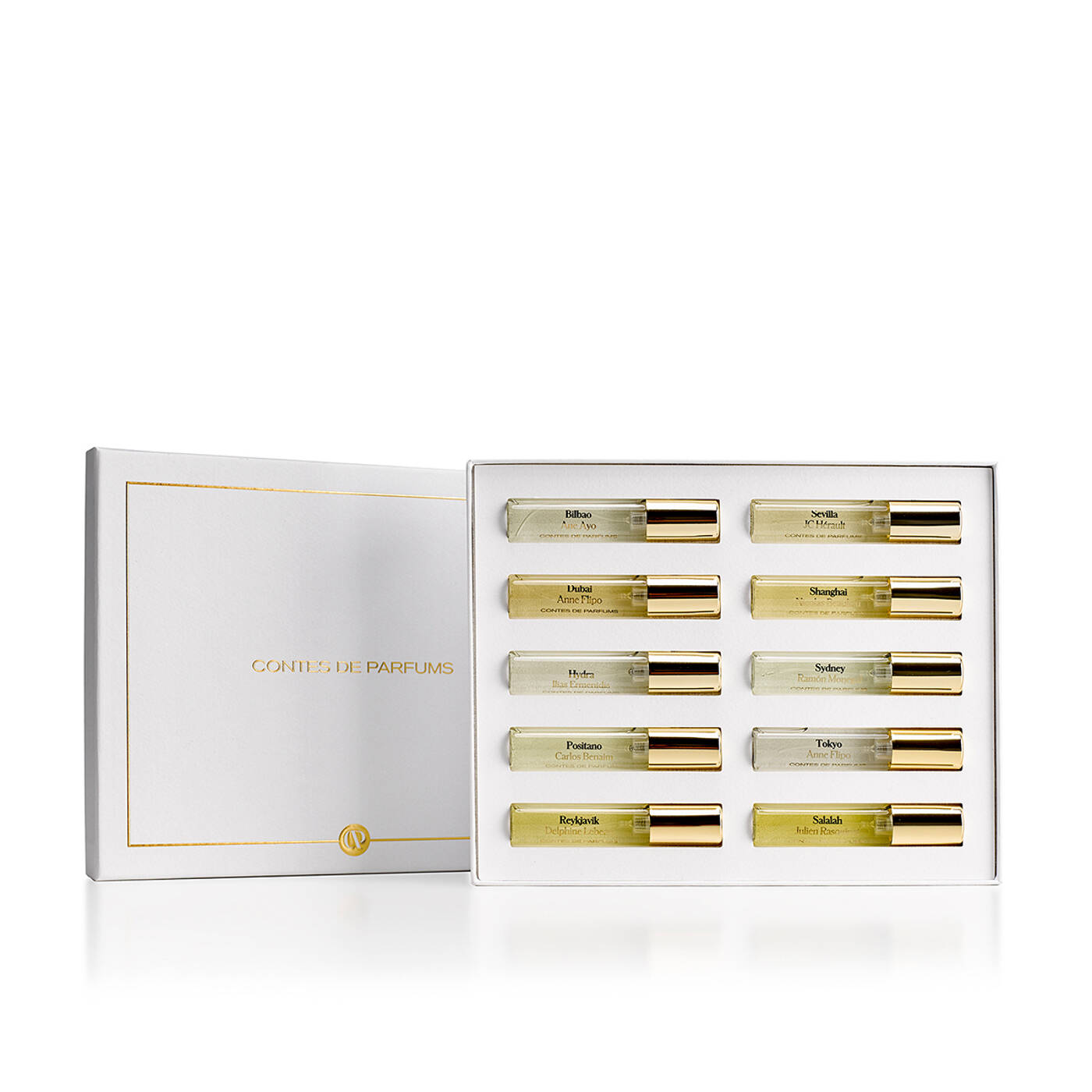 Entdecken Sie zehn moderne Düfte in 10 ml Reisesprays, inspiriert von den Geschichten der weltbesten Parfumeure. Enthält alle Düfte der Cities Collection.