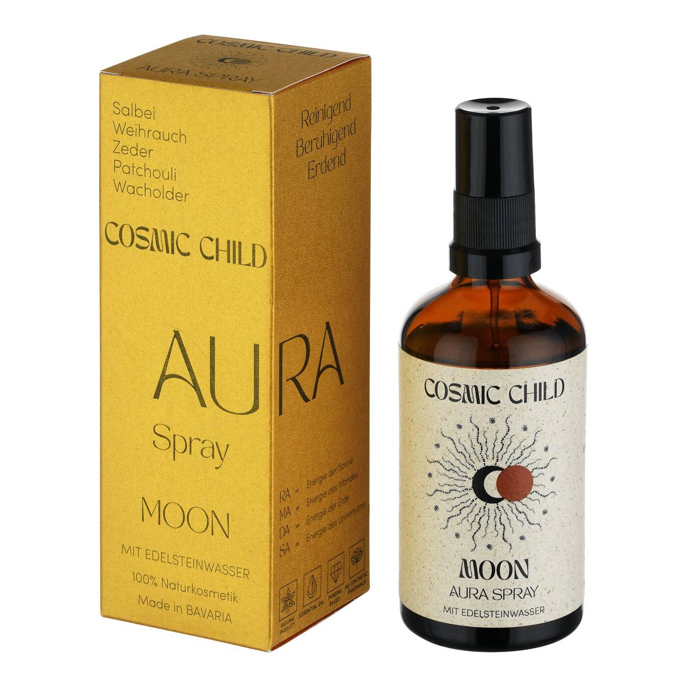 Tauche ein in die transformative Kraft von MOON Aura Spray, das nicht nur reinigend wirkt, sondern auch dein Sakral-Chakra erdet. Mit einer harmonischen Kombination aus erlesenen Inhaltsstoffen wie Salbei, Weihrauch, Patchouli, Zeder und Wacholder, sowie der kostbaren Essenz aus Edelsteinen, wird MOON deine Aura klären und dich in einen