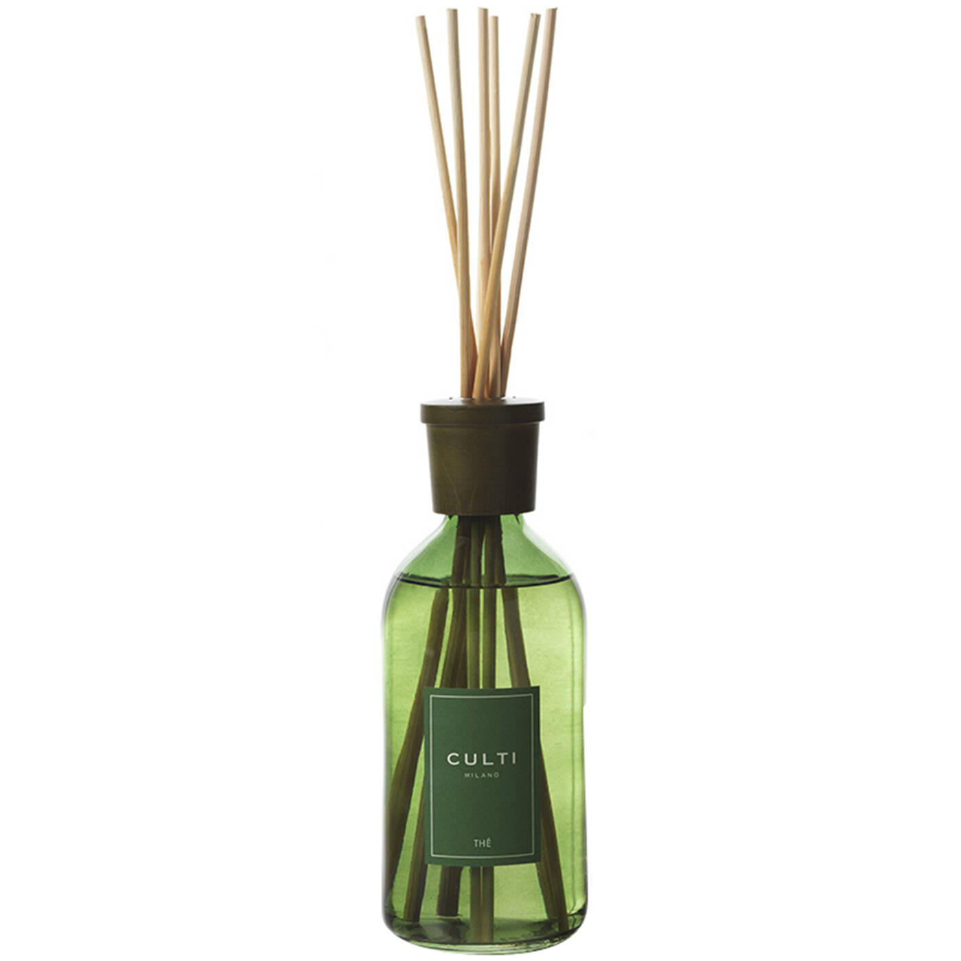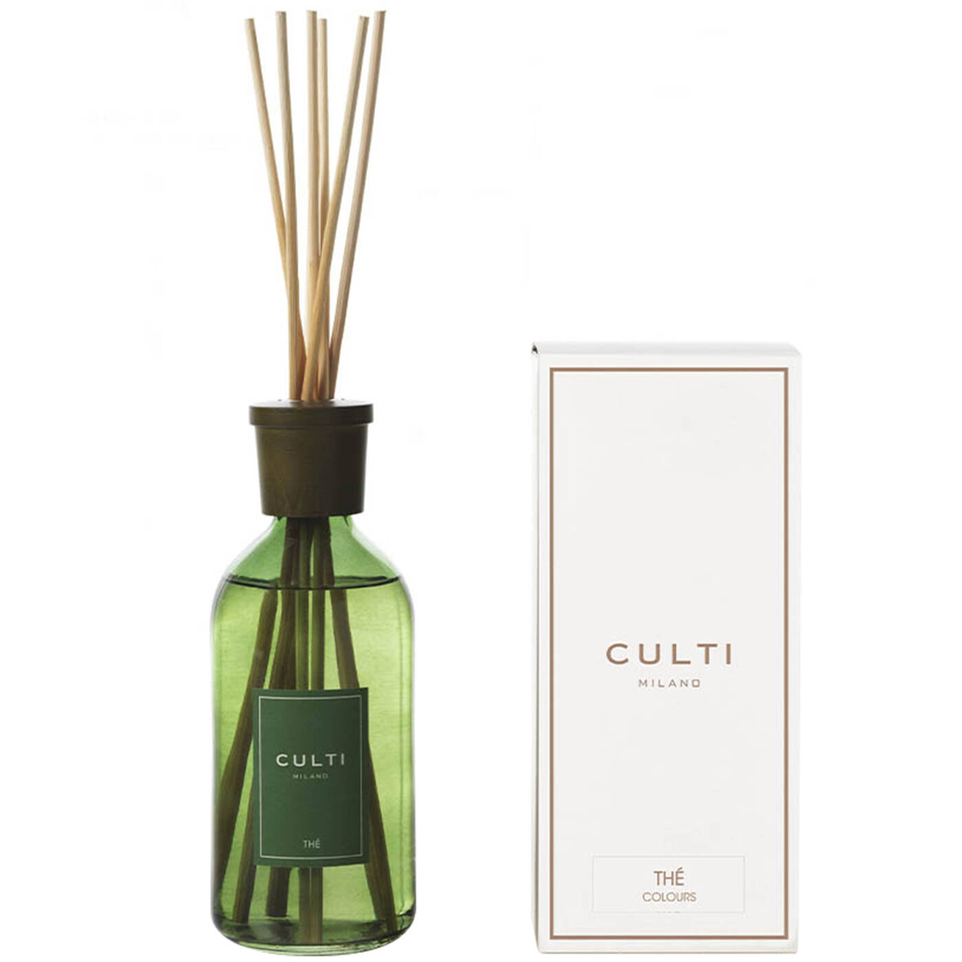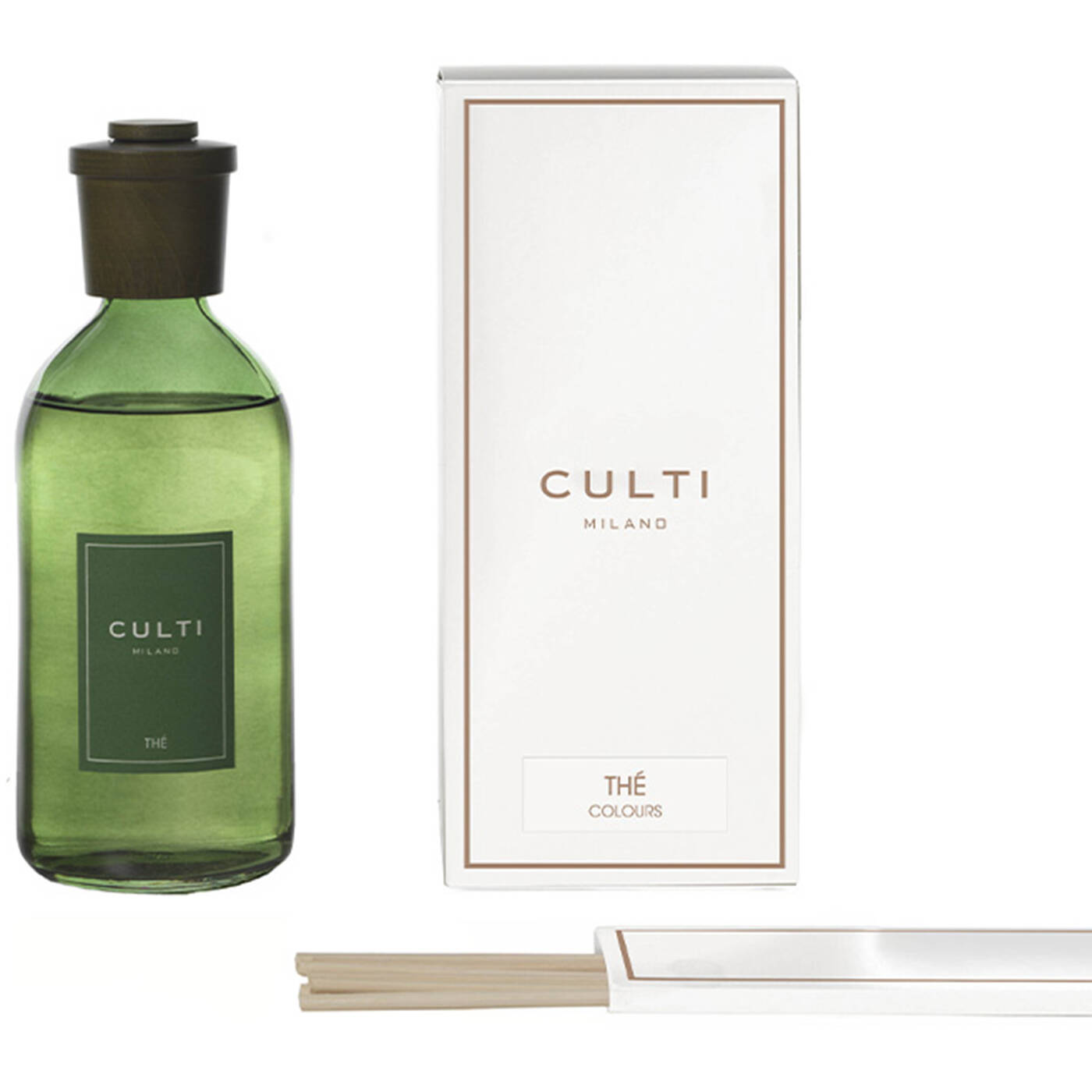 Klare, farbige Glasflaschen mit farbigen Etiketten und Verschluss aus grünem Ahornholz. Die Linie CULTI COLOURS ist ein herrlicher Energieschub, der jeden Raum belebt. Thé: Eintauchen in die meditative Wärme einer mit japanischem Grüntee gefüllten Badewanne. Die Dämpfe steigen hypnotisch aus dem Wasser auf, verbreiten sich sanft und erfüllen den Raum mit dem Aroma der Teeblätter.