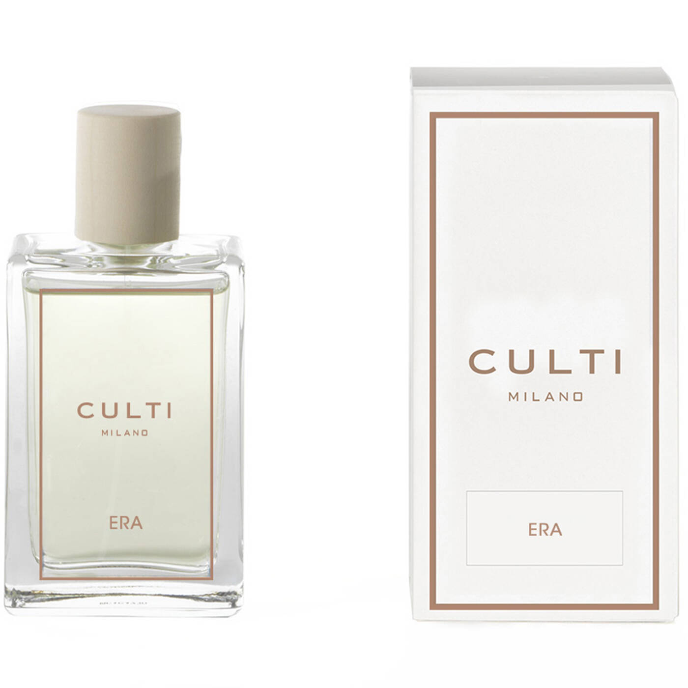 Exklusiver skulpturaler, quadratischer Flakon aus klarem Glas mit verschiedenfarbiger Serigraphie für jeden Duft. Era: ein verwunschener Ort, der an eine Zeit, eine Ära erinnert, unvergesslich. Pflanzlicher Luxus.