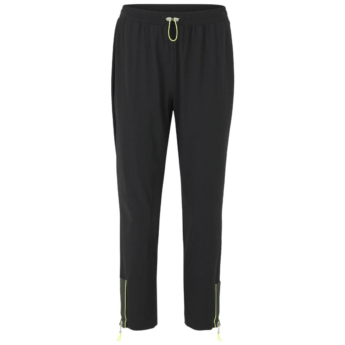 zwei gestreiften neon-reißverschlüsse am saum und die neon-kordel am gummibund.