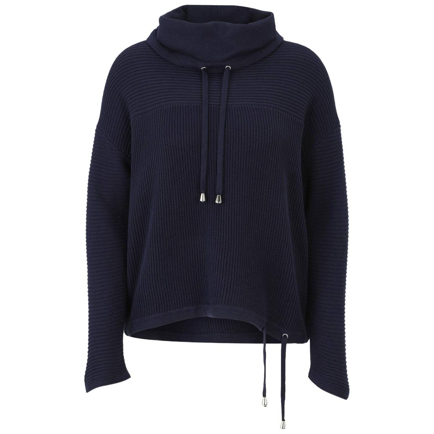 Der kürzere strick-pullover von doris streich mit seinem dreidimensionalen muster-mix ist aus einer kuscheligen viskose-mischung gefertigt. der lässige kragen und die strickbänder mit dekorativen kordelenden runden den lässigen style ab.